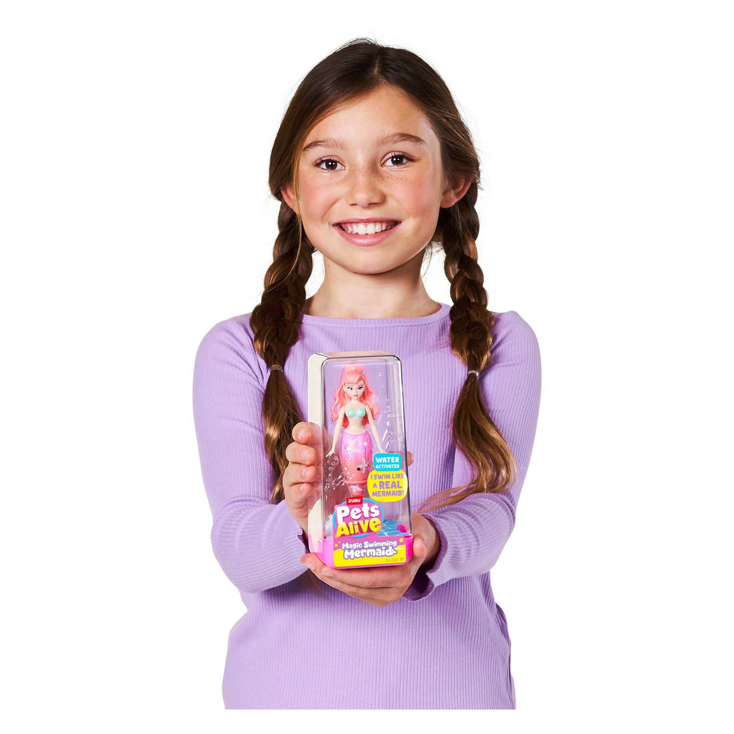 Beeindrucke mit der Pets Alive Magic Swimming Mermaid von ZURU – der wasseraktivierten Meerjungfrauenpuppe, die wie von Zauberhand schwimmt! Einfach ins Wasser legen und schon erwacht sie mit lebensechten Schwimmbewegungen zum Leben. Dank beweglicher Teile und interaktivem Wasserspiel ist sie perfekt für Badewanne, Pool oder Wassertisch. Jede Meerjungfrau besticht durch ein wunderschönes, detailreiches Design und eine farbenfrohe Schwanzflosse, die jede Unterwassergeschichte zum Leben erweckt. Es gibt vier einzigartige Meerjungfrauen zum Sammeln – Kinder werden es lieben, herauszufinden, welche sie als Nächstes bekommen. Dieses Roboterspielzeug regt die Fantasie an, fördert das Geschichtenerzählen und verleiht dem Wasserspiel einen Hauch von Magie. Leicht und einfach für kleine Hände zu bedienen, ist sie ideal für Kinder ab 3 Jahren. Tauche ein in magischen Spielspaß und sammle sie alle!