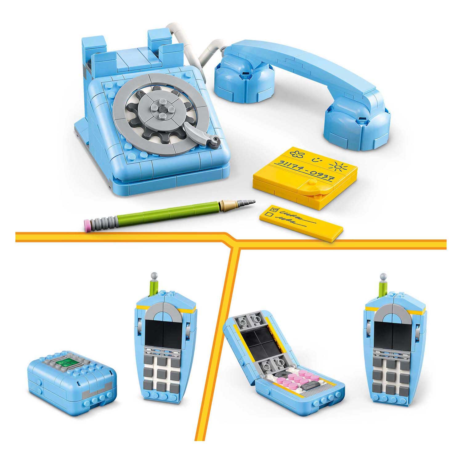 Dieses beeindruckende LEGO Set bietet 3 verschiedene Bauoptionen mit denselben Steinen: ein Retro-Telefon aus den 1960er Jahren, ein Telefon mit Ladestation aus den 1980er Jahren oder 2 coole Telefone aus den 2000er Jahren.