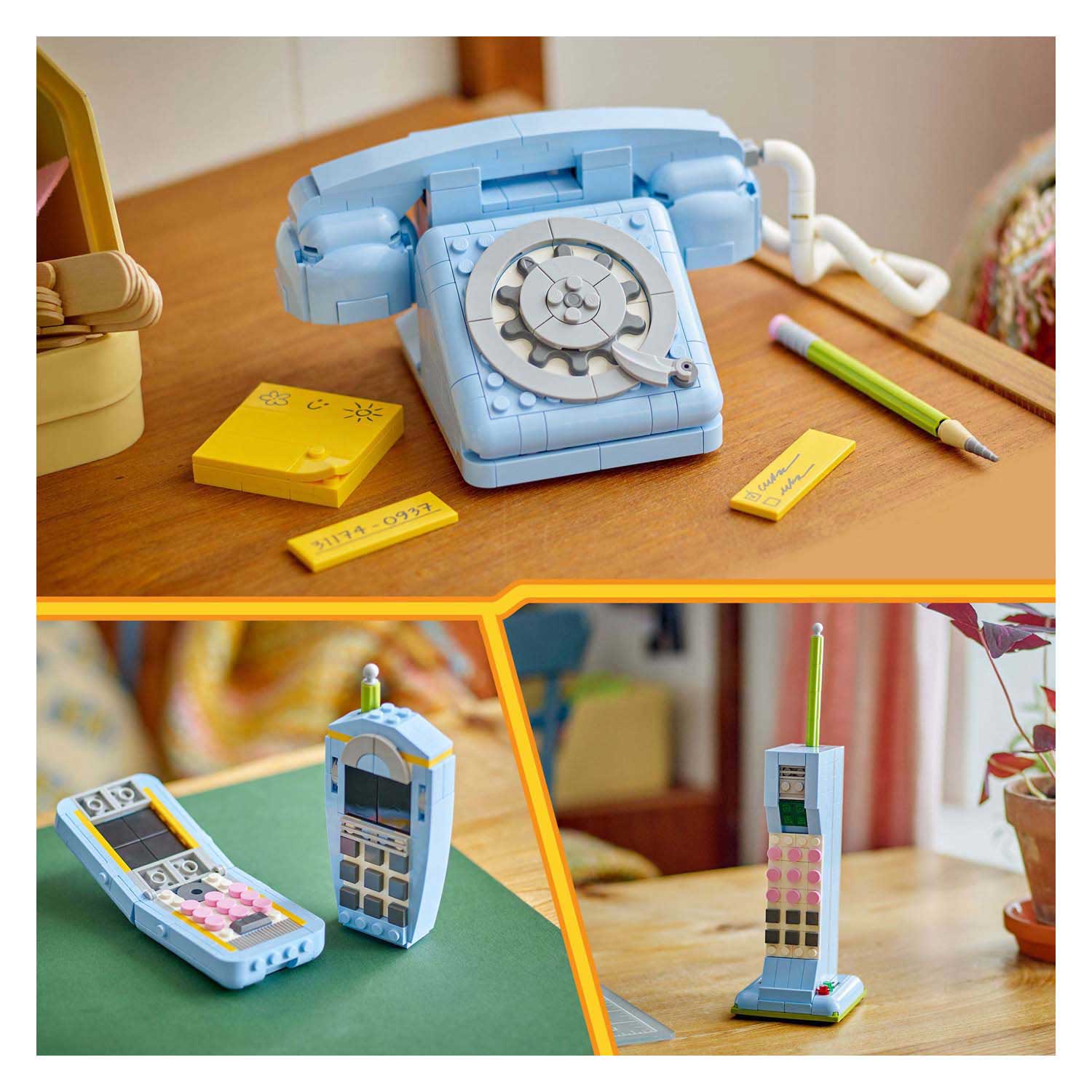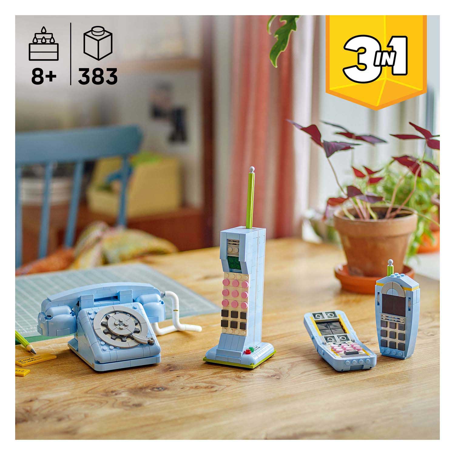 • 3 Retro-Telefon-Bauoptionen in 1 Box; mit dem LEGO Creator 3-in-1-Retro-Telefon können Kinder ab 8 Jahren 3 verschiedene Retro-Modelle mit denselben Steinen bauen und umbauen