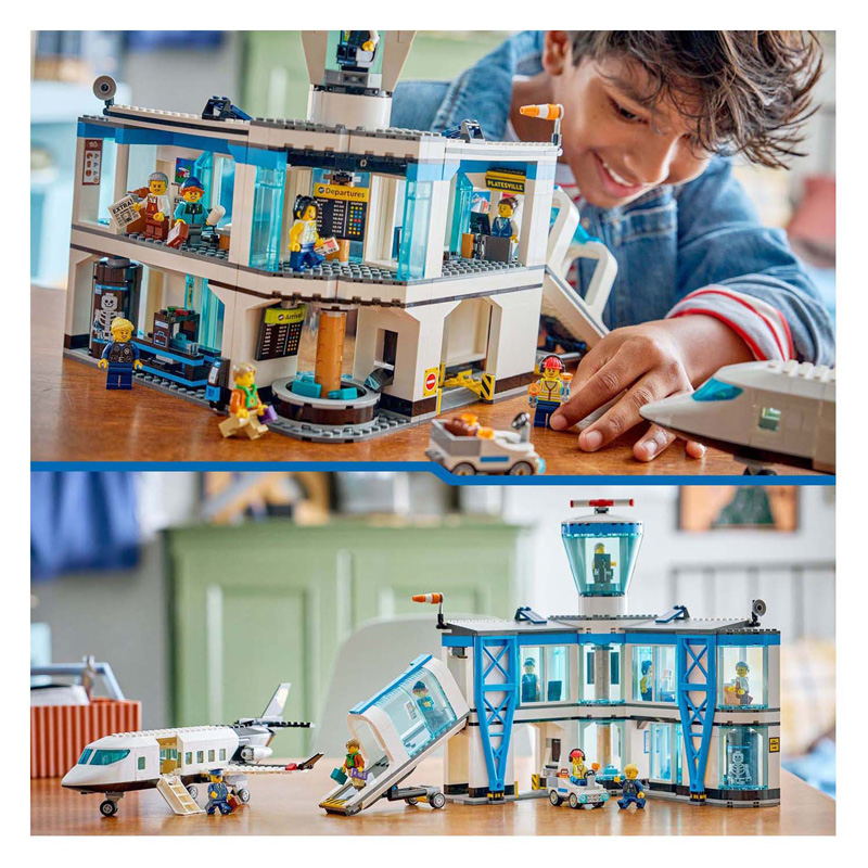Mit dem LEGO® City Flughafen- und Flugzeug-Bauset (60502) für Kinder ab 8 Jahren sind der Fantasie keine Grenzen gesetzt. Dieses detailreiche Flughafenmodell bietet unzählige Funktionen für fantasievolles Spielen. Kinder können Gepäck durch den Spielzeugscanner schicken, den Metalldetektor drehen, um ein Röntgenbild eines Skeletts zu enthüllen, und aus 4 verschiedenen Reisezielen wählen, die auf dem Abflugbildschirm angezeigt werden. Das Set enthält außerdem ein cooles Passagierflugzeug mit detaillierter Kabine und ausklappbarer Treppe sowie einen Pushback und eine Fluggastbrücke. Mit 9 Minifiguren ist die Szene für stundenlangen Spielspaß bereit. Dieses Flughafenspielzeug ist ein tolles Geschenk für Jungen, Mädchen und Kinder, die Modellflugzeuge und LEGO Bausets lieben. Kombiniere es mit anderen Sets (separat erhältlich) aus der LEGO City Reihe für noch größere Abenteuer. Baue gemeinsam mit Freunden und Familie im „Gemeinsam Bauen“-Modus der LEGO Builder App, wo jeder mit seinem eigenen Gerät einen Teil des Sets bauen kann. Das Set enthält 887 Teile.