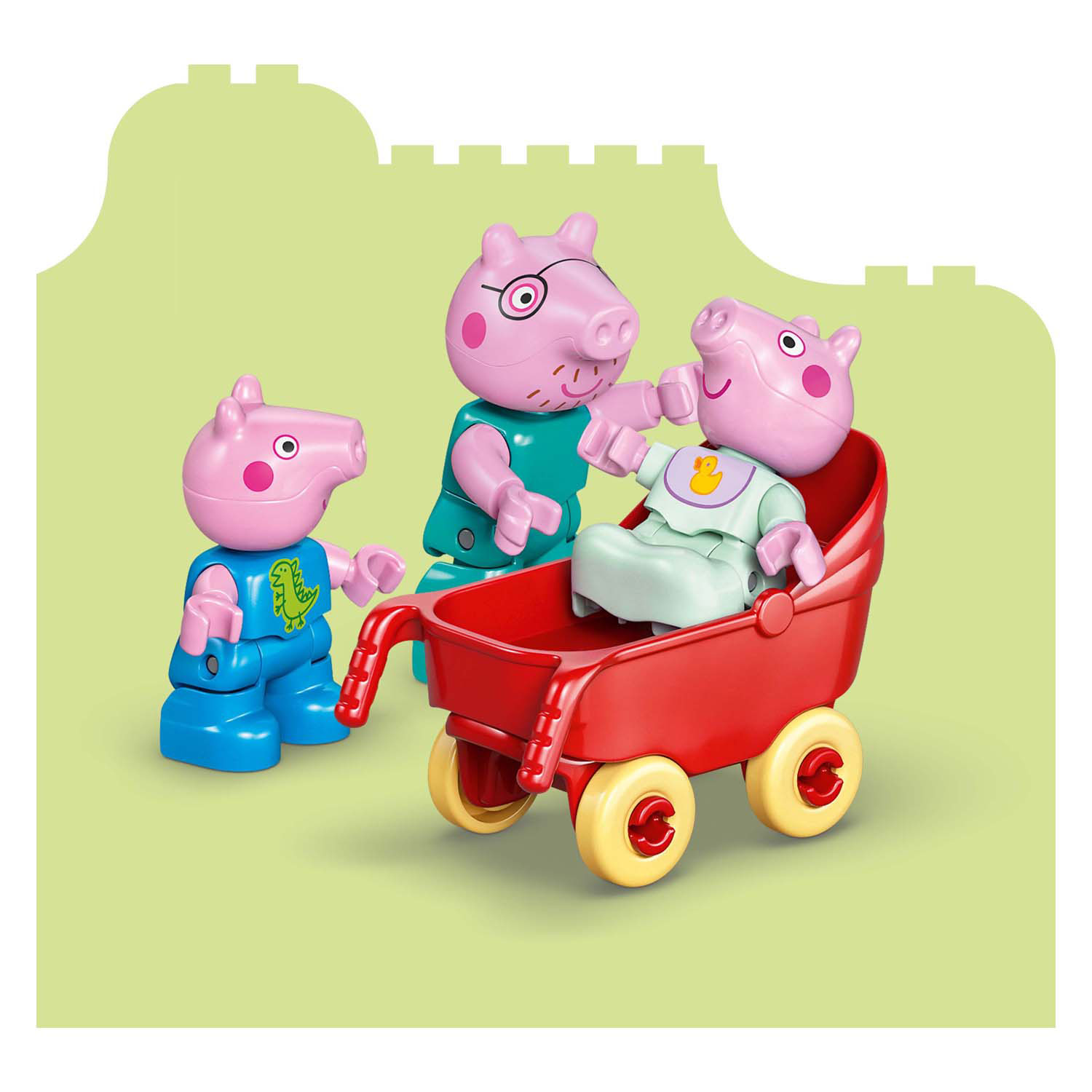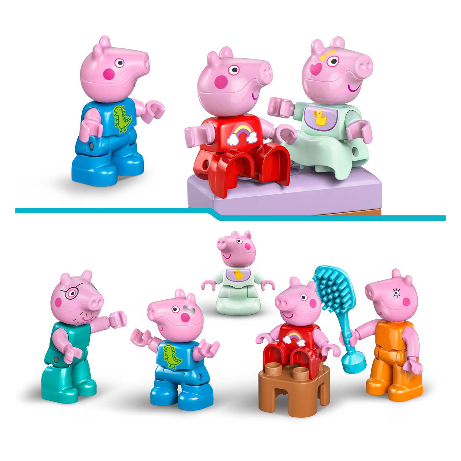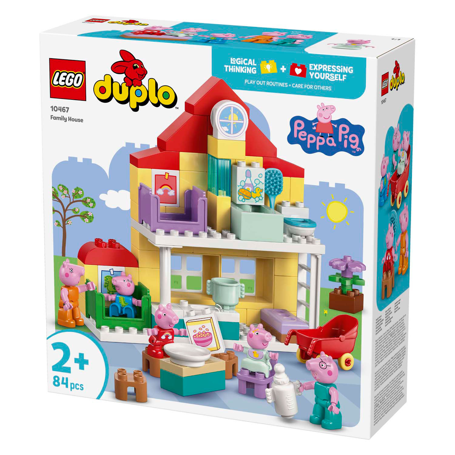 Mit dem Peppa Pig Familienhaus-Bauset (10467) können Kleinkinder Alltagssituationen mit ihren Lieblings-TV-Figuren nachspielen. Dieses Geschenk für Jungen und Mädchen ab 2 Jahren enthält die komplette Peppa Pig Familie mit 5 Charakteren, inklusive Evie. Genau wie in der Serie verfügt dieses zweistöckige LEGO® DUPLO® Haus über separate Zimmer für George und Peppa Pig, eine Küche, ein Badezimmer und ein Wohnzimmer. Dieses fantasievolle Spielzeug regt kleine Mädchen und Jungen dazu an, Szenen aus der Serie und Alltagssituationen zu Hause nachzuspielen, wie zum Beispiel das Zubettgehen oder das gemeinsame Frühstück. Mit den 5 LEGO DUPLO Figuren – Mama Wutz, Papa Wutz, George, Evie und Peppa Wutz – können Kinder ihre emotionale Intelligenz entwickeln, indem sie sich die Ankunft einer kleinen Schwester vorstellen. Dieses Lernspielzeug für Kleinkinder ist vollgepackt mit Zubehör, mit dem kleine Baumeister so tun können, als würden sie sich um ihr Baby kümmern, es im Kinderwagen spazieren fahren, es mit dem Fläschchen füttern oder baden. Enthält 84 Teile. PEPPA GROSSES SPIELZEUG – Kleinkinder ab 2 Jahren erkunden das neue Zuhause der Familie und lernen Baby Evie, den neuesten Familienzuwachs, mit dem Peppa Pig Familienhaus (10467) Bauset kennen. ALLTAGSÜBERSICHT – Dieses Spielhaus regt die Fantasie an, indem Kleinkinder den Familienalltag mit Mama Wutz, Papa Wutz, Schorsch Wutz, Evie Wutz und Peppa Wutz nachspielen. AUTHENTISCHE DETAILS – Genau wie das Haus in der Serie verfügt dieses LEGO® DUPLO® Spielhaus über separate Schlafzimmer für Schorsch und Peppa Wutz, ein Badezimmer, eine Küche, ein Wohnzimmer und jede Menge Spielzeugzubehör. PÄDAGOGISCHES SPIELZEUG – Dieses Lernspielzeug vermittelt Kindern Morgen- und Abendrituale und fördert ihre emotionale Intelligenz, während sie sich um Evie kümmern, mit ihr im Kinderwagen spazieren gehen oder sie mit dem Fläschchen füttern. GESCHENKIDEE FÜR KLEINKINDER – Mit seinen vielen Funktionen, die Kleinkinder beim Geschichtenerzählen unterstützen, ist dieses LEGO® DUPLO® Bauset ein tolles Geschenk für Kinder ab 2 Jahren, die Peppa Wutz lieben. Sicheres Puppenhaus-Spielzeug für Kleinkinder – Alle Bausteine und Zubehörteile dieses Puppenhaus-Sets wurden umfassend getestet, um die Einhaltung strenger Kindersicherheitsstandards zu gewährleisten. Lernen mit Peppa Pig – Die Lernspielzeugsets für Kleinkinder (separat erhältlich) fördern die Entwicklung kleiner Baumeister und regen ihre Fantasie an. Abmessungen – Dieses 84-teilige Spielset für Kinder enthält ein Peppa-Pig-Haus mit einer Höhe von über 26 cm, einer Breite von 25 cm und einer Tiefe von 9 cm.