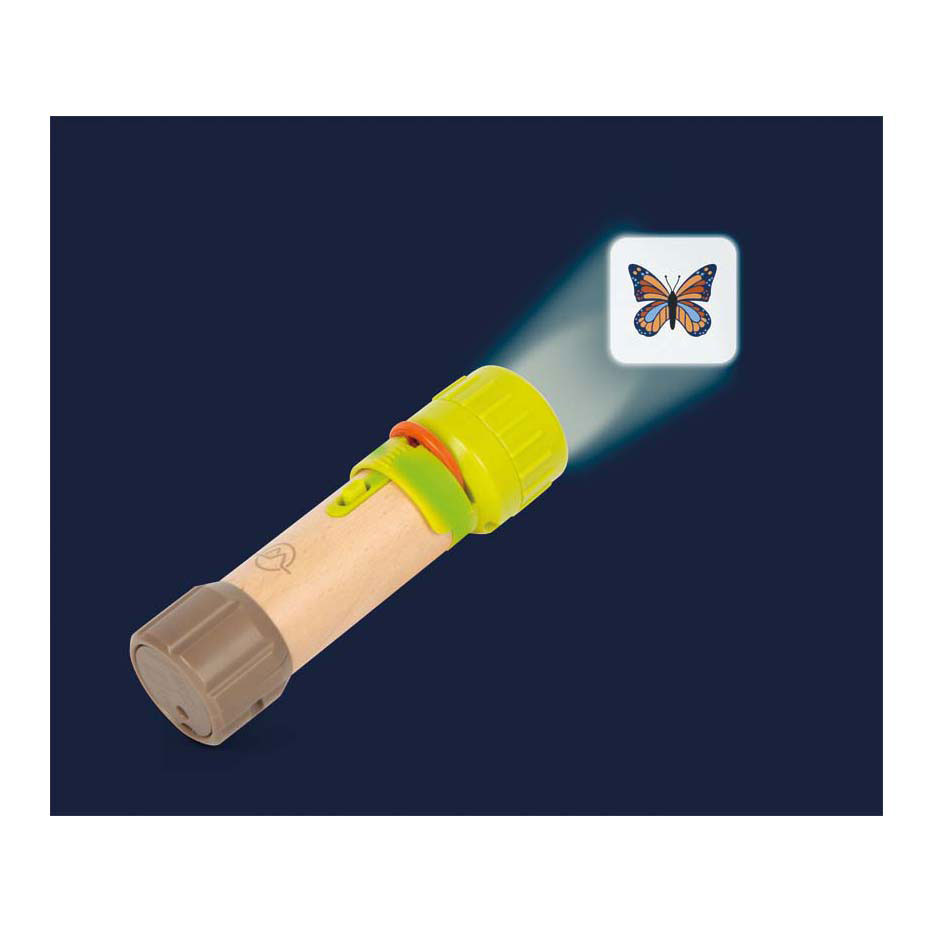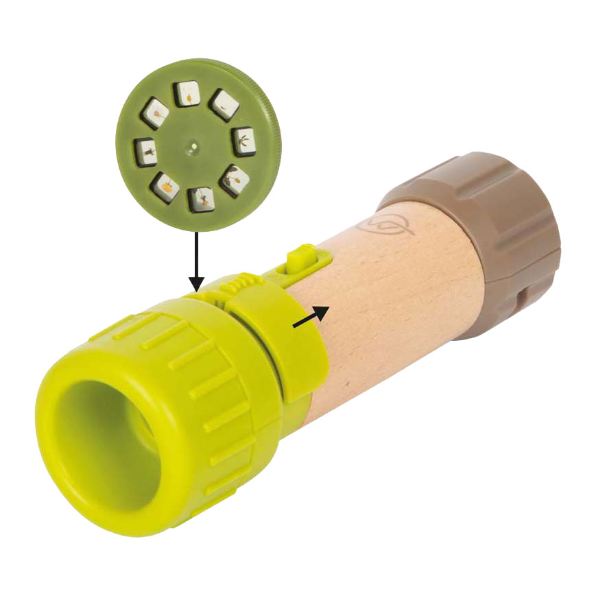 Entdecke die Welt der Natur! Dieses moderne Entdeckerspielzeug vereint zwei Funktionen: Als Taschenlampe spendet es Licht im Dunkeln und projiziert als Projektor spannende Lerninhalte an Wände, Decken oder Böden. Die kinderfreundliche Taschenlampe ist ergonomisch geformt, aus robustem Kunststoff gefertigt und mit einem Griff aus Naturholz versehen. Sechs austauschbare Filmrollen zeigen verschiedene wissenschaftliche Themen, wie den Entwicklungszyklus von Fröschen, Schmetterlingen und Löwenzahn, Blätter und Früchte, Tiere und ihre Spuren sowie Sternbilder. Perfekt für junge Naturforscher!