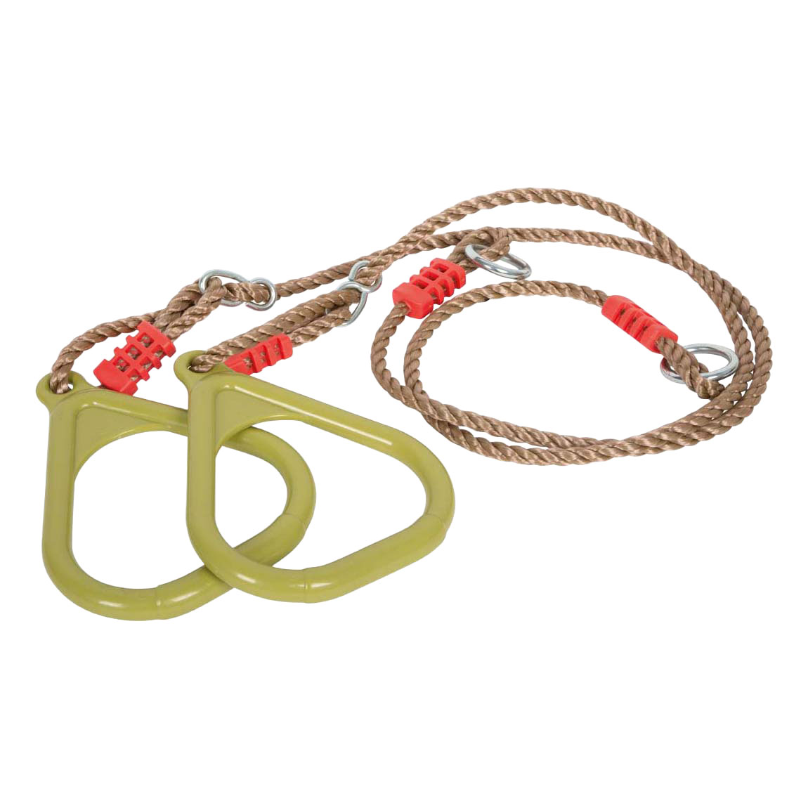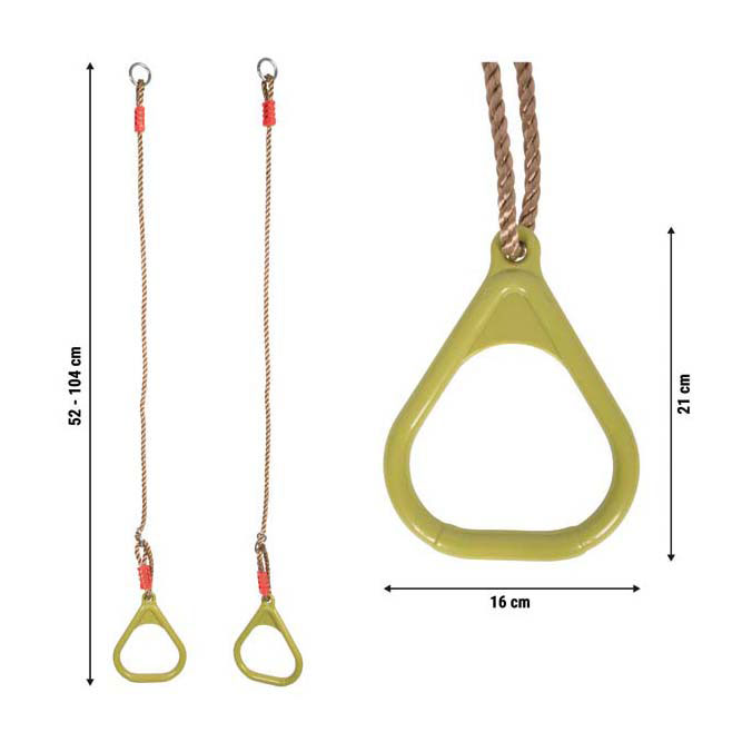 Die robusten Turnringe sind aus wetterfestem Kunststoff gefertigt und eignen sich daher sowohl für drinnen als auch für draußen. Dank der Metallaufhängung lassen sie sich einfach anbringen und abnehmen. Die Höhe ist mithilfe der verstellbaren Seile anpassbar, sodass Kinder und Erwachsene die optimale Länge finden. Mit einer Tragkraft von bis zu 100 kg sind die Ringe für Sportler jeden Alters geeignet. Das Training mit Turnringen fördert Kraft, Gleichgewicht und Ausdauer und hilft Kindern, ein gutes Rhythmusgefühl und Bewegungsgefühl zu entwickeln. Das farbenfrohe Design macht sie noch attraktiver für tägliches Spielen und sportlichen Spaß.