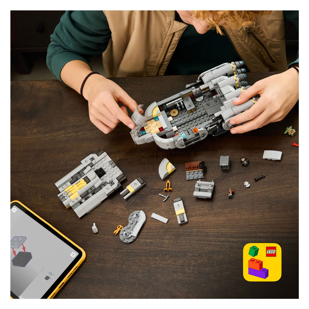 Mit diesem LEGO® Star Wars™ Spielset für Kinder können sie an Bord des Anzellan-Raumschiffs (75445) aus Star Wars: The Mandalorian und Grogu™ Droiden bauen und reparieren. Öffne das Cockpitfenster und hebe das Dach an, um die LEGO Figur von Grogu und zwei niedliche Anzellaner in das detailreiche Raumschiff zu setzen. Nutze die Droidenteile und Werkzeuge in der Werkstatt, um einen Kampfdroiden zu bauen (oder nimm die Werkbank vom Raumschiff ab und spiele separat damit). Platziere die LEGO Figuren am Tisch mit den blauen Keksen oder auf dem Stuhl an der Konsole. Klappe die Laderampe herunter, wenn es Zeit zum Aussteigen ist. Dieses baubare Raumschiffmodell ist ein tolles Geschenk für Jungen, Mädchen und Fans von Star Wars: The Mandalorian und Grogu ab 9 Jahren und fördert die Kreativität von Kindern. Mit der LEGO Builder App erleben Kinder noch mehr Bauspaß. Baue mit 3D-Anleitungen, zoome in dein Modell hinein und drehe es, während du deinen Fortschritt verfolgst – alles in der App. Das Set enthält 701 Teile. RAUMSCHIFF-BAU- UND SPIELSET FÜR KINDER – Steig ein in das LEGO® Star Wars™ Anzellan-Raumschiff (75445) aus Star Wars: The Mandalorian und Grogu™ und erlebe stundenlangen Droidenbauspaß. 3 LEGO® STAR WARS™ FIGUREN – Platziere die LEGO Figur von Grogu und 2 Anzellanern im Cockpit oder im Raumschiff. TOLLE FEATURES – Klappe die Laderampe herunter, baue und repariere Kampfdroiden mit den Droidenteilen und Werkzeugen in der Werkstatt, setze einen Anzellaner an den Tisch, damit er einen Keks isst, und vieles mehr. EINFACHES SPIELEN – Hebe das Dach an, um Zugang zum Raumschiff zu erhalten, und ziehe die Werkbank heraus, um mehr Platz zum Reparieren von Droiden zu schaffen. STAR WARS™ GESCHENK FÜR KINDER – Dieses coole Bauset ist ein tolles Geschenk für Jungen, Mädchen und alle Fans von Star Wars: The Mandalorian und Grogu™ ab 9 Jahren. DIGITALES BAUEN ANLEITUNG – Die LEGO® Builder App begleitet Kinder auf einem Bauabenteuer, bei dem sie hineinzoomen, Sets mithilfe von 3D-Anweisungen drehen und ihren Fortschritt speichern und verfolgen können. ENTDECKE DIE WEITERE SERIE – Entdecke auch die anderen LEGO® Star Wars™ Sammelsets, inspiriert von Star Wars: The Mandalorian und Grogu™ (separat erhältlich), um spannende Szenen nachzuspielen oder eigene Geschichten zu erfinden. ABMESSUNGEN – Das Raumschiffmodell in diesem 701-teiligen LEGO® Star Wars™ Bauset ist ca. 7 cm hoch, 25 cm lang und 14 cm breit.