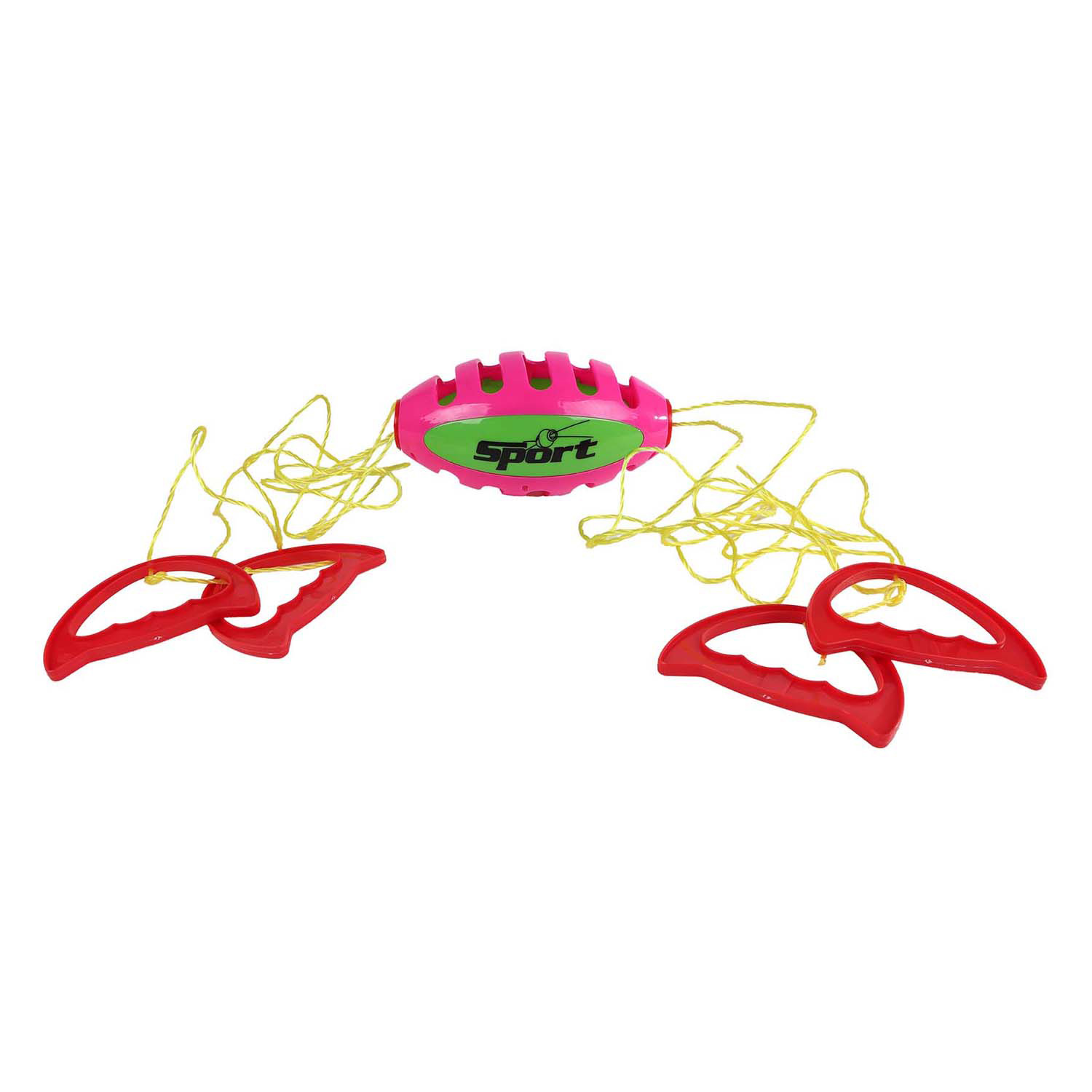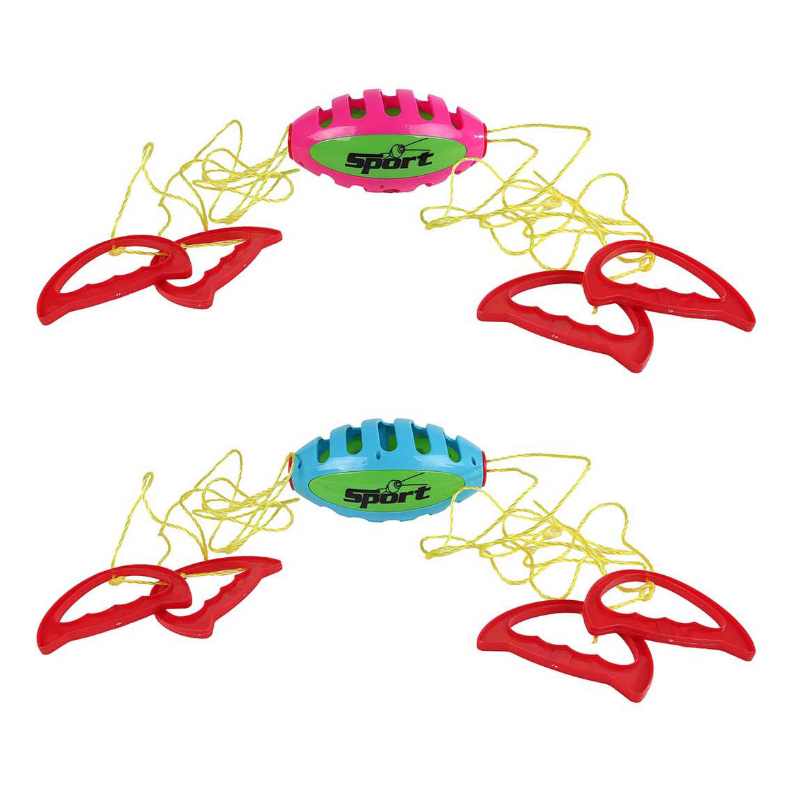 Ballziehspiel mit Griffen und einem ca. 18 cm großen Speedball. Aus Kunststoff, für 2 Spieler, erhältlich in 2 verschiedenen Farben. Geeignet für Kinder ab 3 Jahren.
