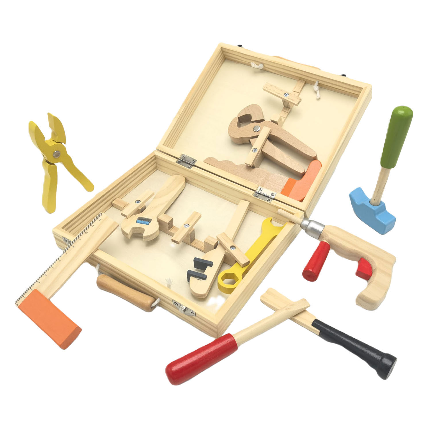 Werkzeugkasten aus Holz – 12-teilig