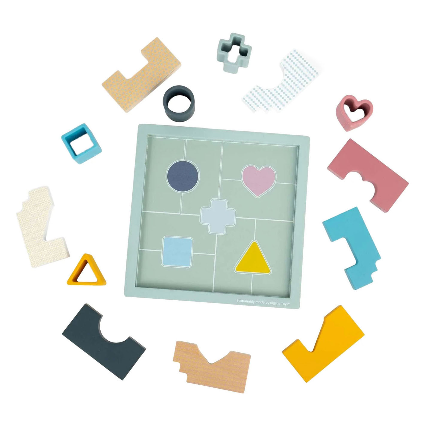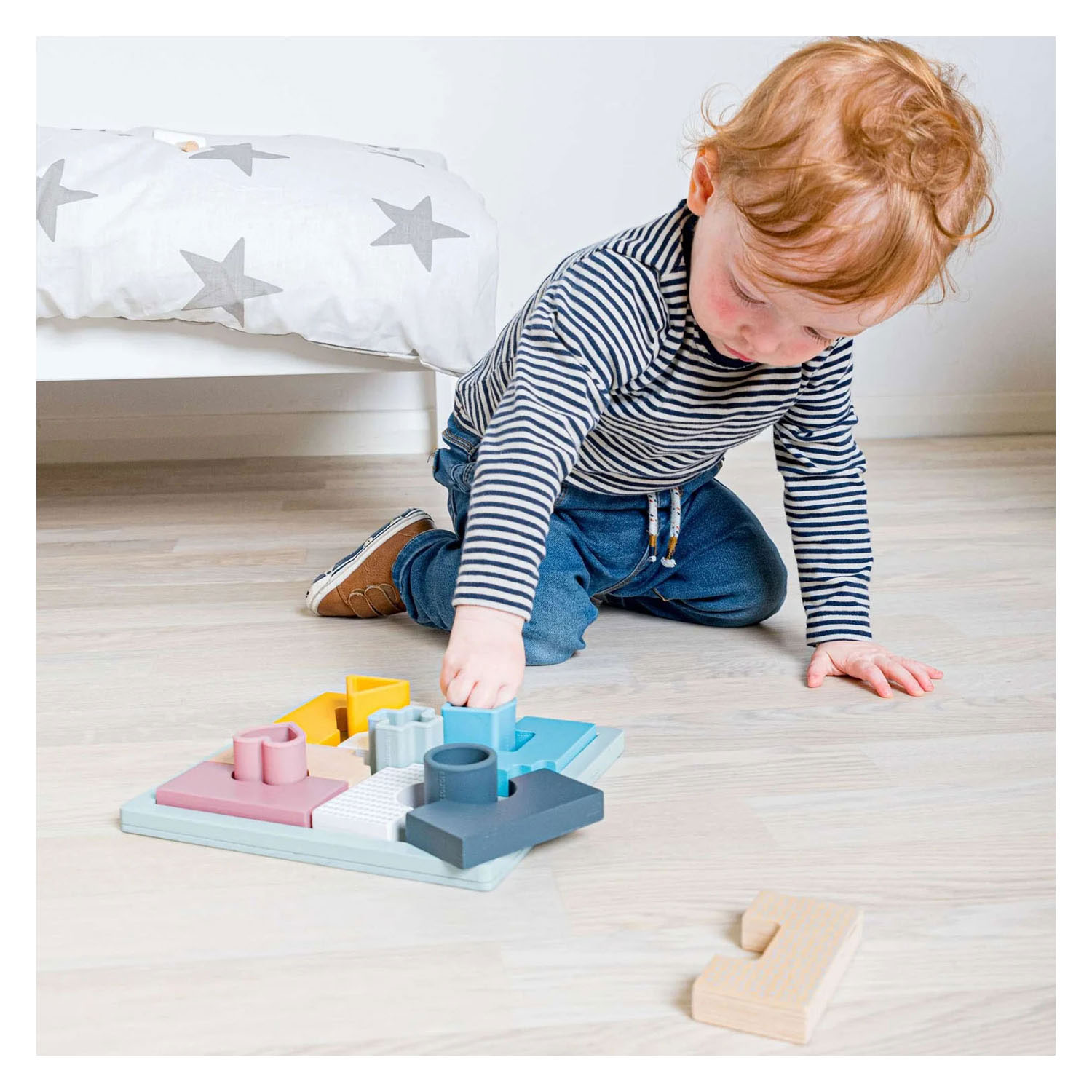 Dieses 2-in-1-Puzzle mit Formenspiel begeistert Kleinkinder und ist speziell für kleine Hände entwickelt! Das Mosaikpuzzle besteht aus 8 Holzpuzzleteilen und 5 Silikonformen, die die Kleinen spielerisch in die richtigen Felder des Puzzlebretts einsetzen können. Dieses haptische Formenpuzzle fördert die kognitive Entwicklung Ihres Kindes, indem es Problemlösungsfähigkeiten und logisches Denken erlernt sowie die Form- und Farberkennung stärkt. Holzpuzzles eignen sich außerdem hervorragend zur Verbesserung der Feinmotorik und der Hand-Augen-Koordination. Eigenschaften: • Robustes Formenpuzzle • 14 Spielteile • Hergestellt aus 100 % Silikon und FSC®-zertifiziertem Holz • Geeignet für Kinder ab 12 Monaten