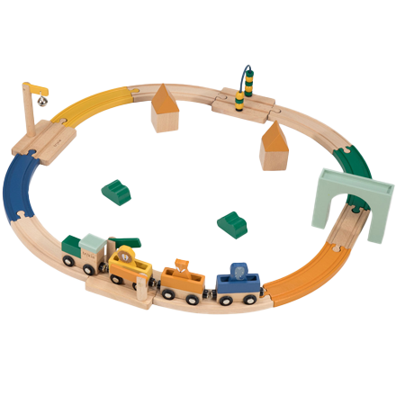 Small Foot - Holzeisenbahn-Set mit Brücke, 60-tlg.