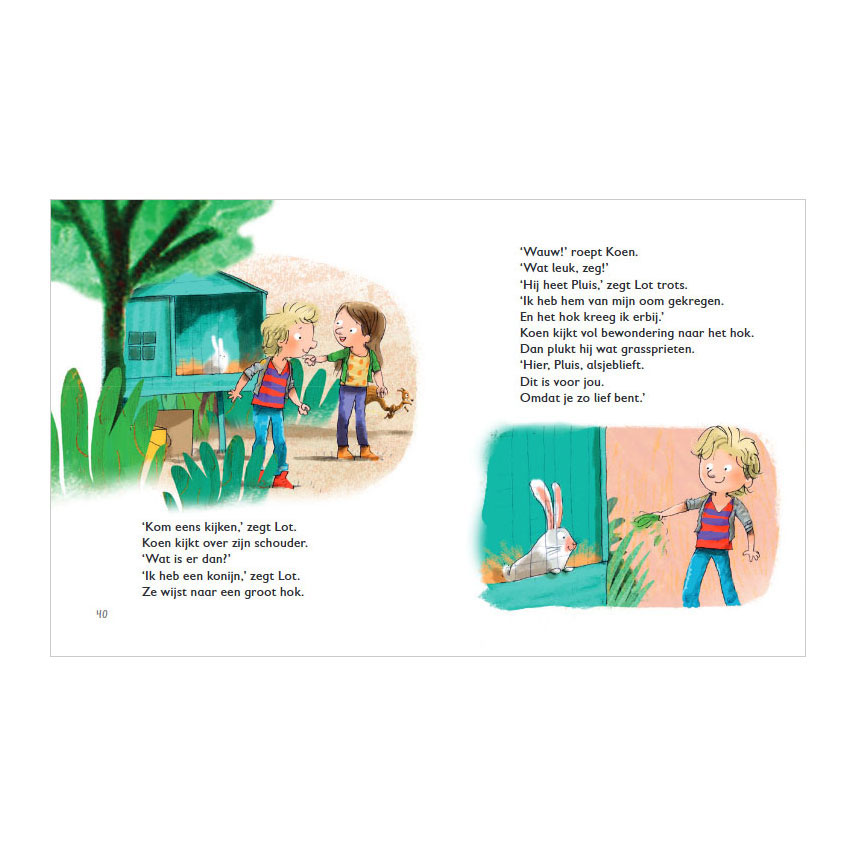 In dieser dritten Sammlung erwarten euch drei bezaubernde Abenteuer von Koen und Lot. In „Ein Klaps auf den Hinterkopf“ lernen Koen und Lot ihren Nachbarsjungen Tom kennen. Er ist immer wütend und gar nicht nett. Doch als sie ihn weinen sehen und zu ihm gehen, merken sie, dass er gar nicht so dumm ist, wie sie dachten. In „Ein Kaninchen für Lot“ nimmt Lot ihr neues Kaninchen mit auf die Weide. Doch plötzlich ist es verschwunden. Was nun? In „Die Hütte der Vier“ spielen Koen und Lot in einer Hütte im Gebüsch. Als ein Gewitter aufzieht, rennen sie schnell hinein. Aber Koen kommt nicht zurück. Wo ist er nur hin?