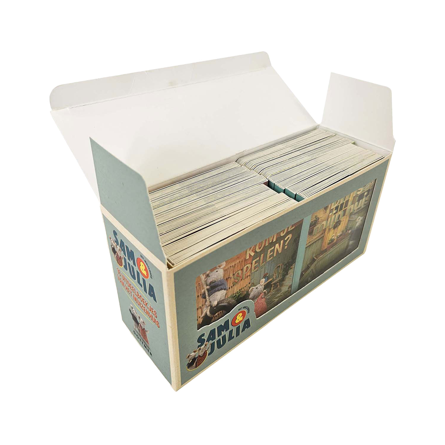 Machen Sie die Belohnung mit diesen fröhlichen „Sam & Julia Handout Books“ zu etwas ganz Besonderem. Dieses festliche Set enthält 16 Handzettel mit den Geschichten: „Geburtstag“, „Das ist mein Haus“, „Einkaufen“ und „Kommst du zum Spielen?“. Die Minibücher werden in einer stabilen Box zum Mitnehmen in die Kita geliefert. Die Sharingbox eignet sich ideal zum Teilen mit Freunden. Die Sam & Julia-Handzettel sind ein Fest der Anerkennung für Fans von The Mouse Mansion und für Kinder ab 2 Jahren geeignet.