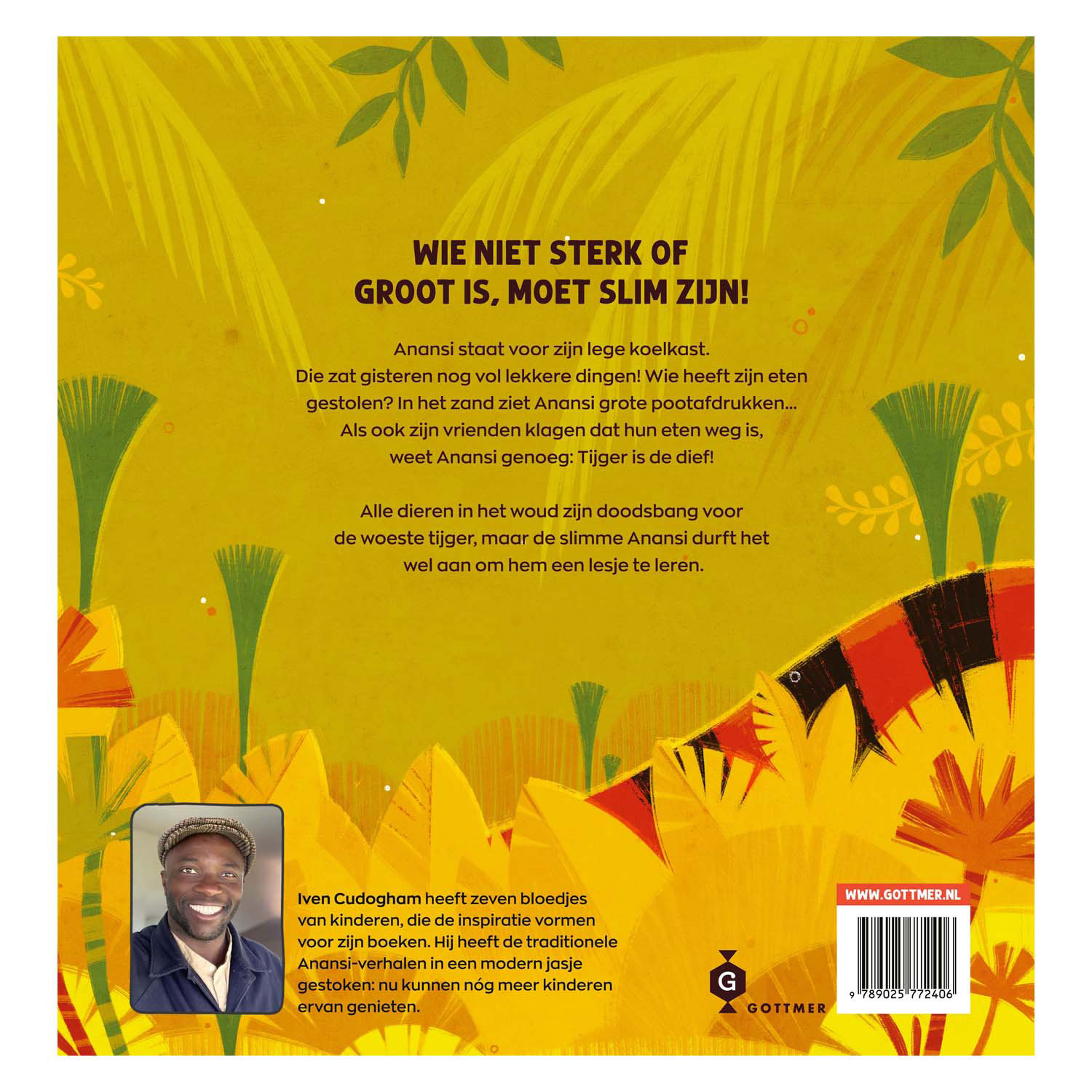 Als Anansi, die Spinne, seinen leeren Kühlschrank und einen großen Pfotenabdruck vor seiner Tür sieht, weiß er, was los ist: Der gierige Tiger ist zurück und hat sich über all das leckere Essen hergemacht, das Anansi und seine Waldfreunde gegessen haben. Zeit, Tiger eine Lektion zu erteilen! Alle Tiere zittern vor Tiger, nur Anansi nicht. Er schmiedet einen listigen Plan, um Tiger in die Schranken zu weisen.