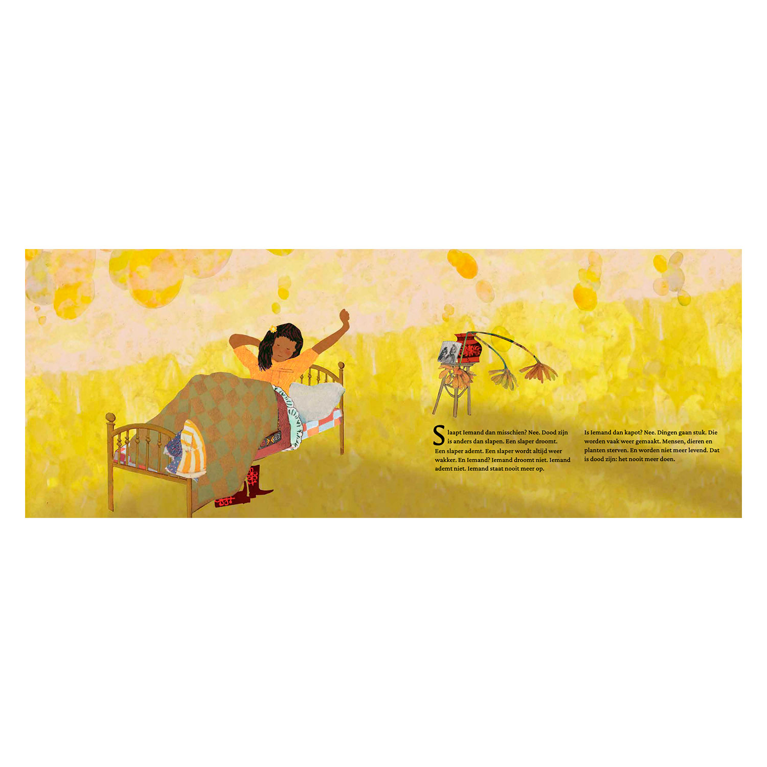 In dem Sachbilderbuch „Het einde van Iemand“ (Das Ende von jemandem) gibt Floor Bal Antworten auf alle schwierigen Fragen rund um den Tod. Für Kinder ab 4 Jahren. In „Het einde van Iemand“ (Das Ende von jemandem) erklärt die Wissenschaftsjournalistin Floor Bal Schritt für Schritt, wie es ist, tot zu sein. Zuerst war der Körper lebendig und jetzt ist er es nicht mehr. Wie ist das möglich? Was passiert dann mit dem Körper? Ist tot sein dasselbe wie sehr lange zu schlafen? Und was passiert bei einer Beerdigung? Floor Bal, die für ihr Buch „Het hele soepzootje“ (Der ganze Suppenzootje) von der Griffeljury mit einer Flagge und einem Wimpel ausgezeichnet wurde, gibt auf klare und dennoch beruhigende Weise Antworten auf all diese Kinderfragen rund um den Tod. Ihr Text bleibt sachlich, zeugt aber von einer beispiellosen Wärme und Zuneigung. Ebenso eigenwillig sind die Illustrationen von Grootzus aus Rotterdam. Mit ihren fantasievollen Collagen stellt sie die Licht- und Schattenseiten des Todes mit viel Schwung und Farbe dar.