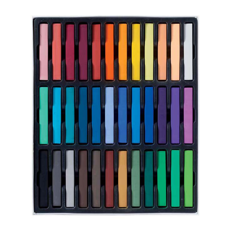 Inhalt: 36 Pastelle (100 Weiß – 222 Neapelgelb hell – 292 Neapelgelbrot hell – 205 Zitronengelb (Primär) – 200 Gelb – 202 Dunkelgelb – 235 Orange – 398 Naphtholrot hell – 337 Magenta – 318 Karmin – 316 Venezianischrosa – 374 Rosabeige – 546 Rotviolett hell – 536 Violett – 548 Blauviolett – 570 Phthaloblau – 535 Coelinblau (Phthalo) – 504 Ultramarin – 505 Ultramarin hell – 566 Preußischblau – 522 Türkisblau – 640 Blaugrün – 551 Himmelblau hell – 678 Mintgrün – 617 Gelbgrün – 675 Phthalogrün – 615 Paul Veronese Grün – 602 Dunkelgrün – 668 Chrom Oxidgrün – 227 Gelber Ocker – 411 Gebrannte Siena – 408 Natürliche Umbra – 409 Gebrannte Umbra – 705 Hellgrau – 706 Dunkelgrau – 700 Schwarz).