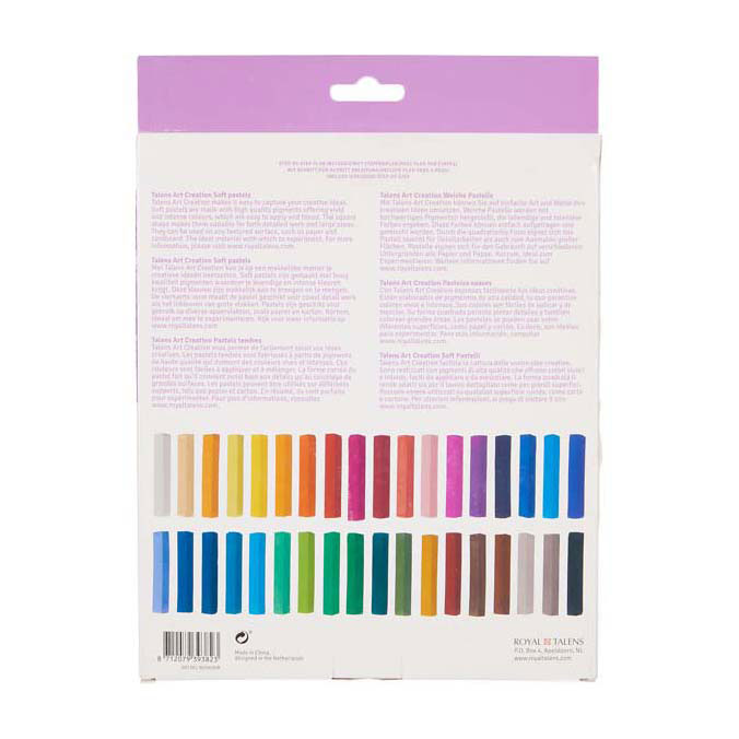 Talens Art Creation Softpastelle sind weiche, trockene Pastelle, mit denen Sie auf malerische Weise zeichnen können. Weiche Pastelle werden aus hochwertigen Pigmenten hergestellt, die lebendige, intensive Farben mit einem pudrigen, samtigen Finish erzeugen. Die Pastelle lassen sich leicht auftragen und verblenden. Vermischen Sie die Farben ganz einfach mit Ihren Fingern, einem Wattestäbchen oder einem Pinsel. Durch die handliche quadratische Form eignen sich diese Pastelle sowohl für große Flächen als auch für feine Details (mit der Spitze des Quadrats).