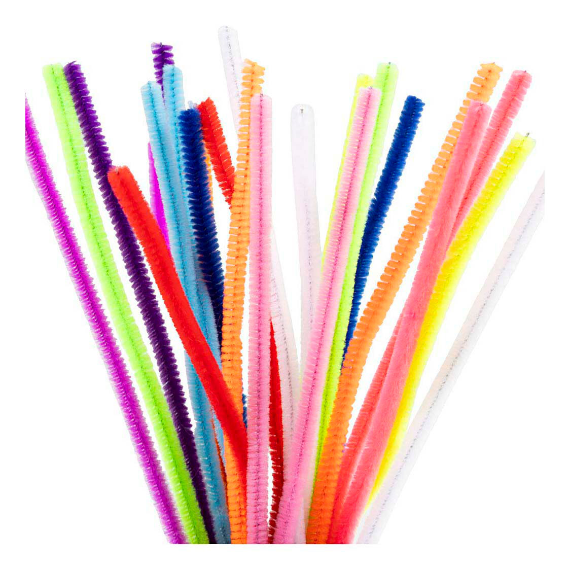 Chenille 6 mm x 30 cm Bunt - 25 Stück.
