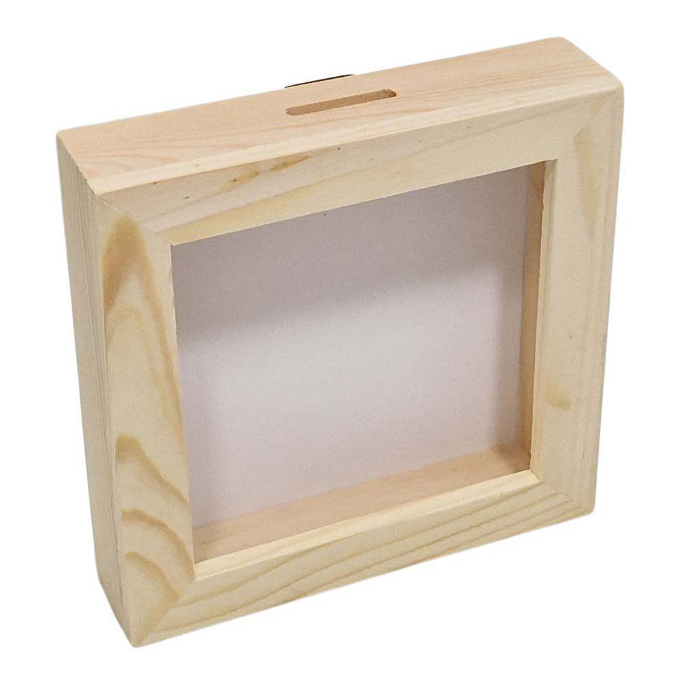 Holzspardose Plexiglas mit weißer Rückseite klein