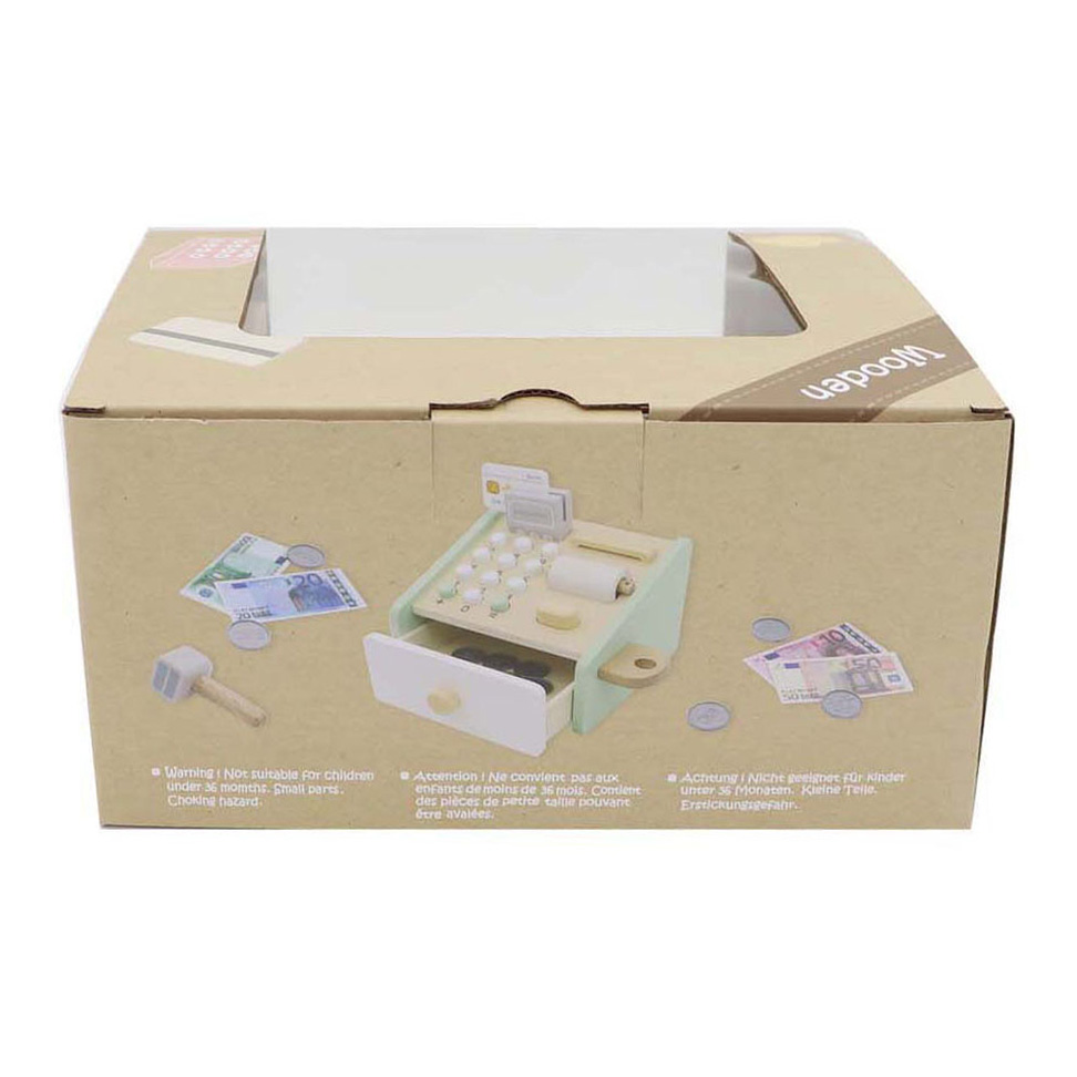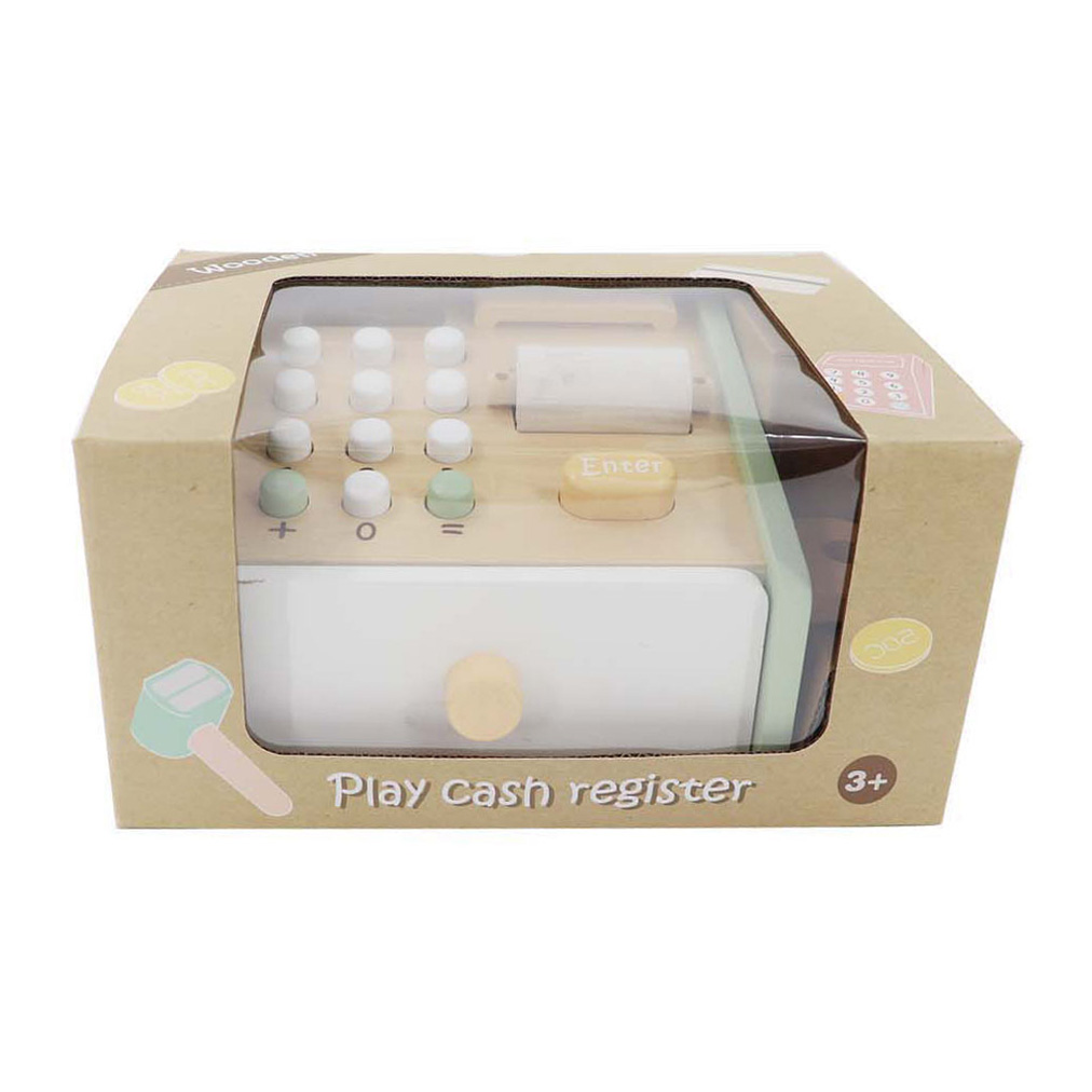 Spielzeug-Registrierkasse aus Holz mit Zubehör