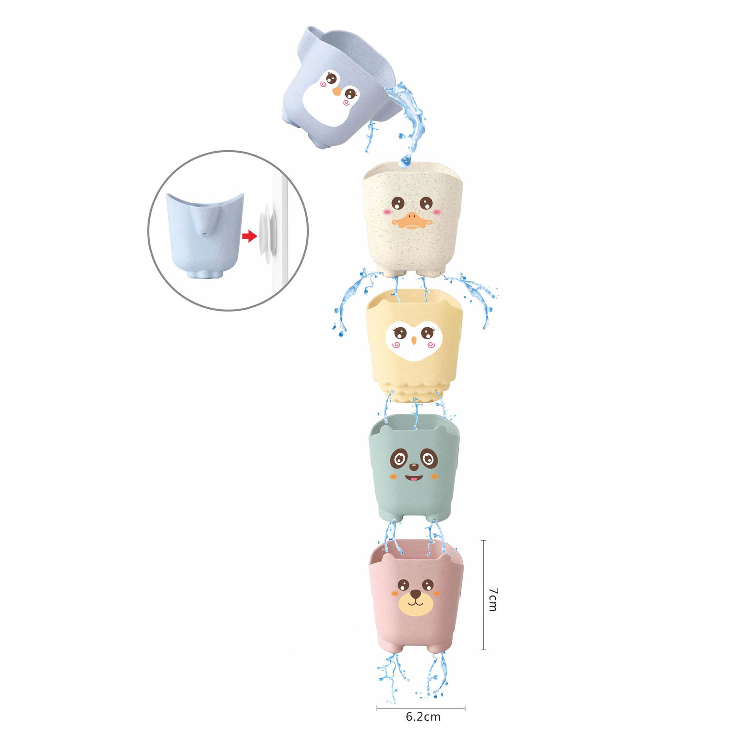 Wasserfall-Badetassen Pastell, 5 Stück