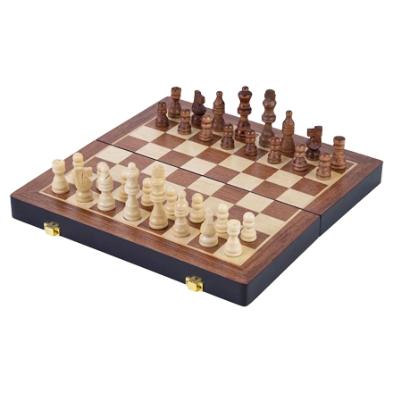 Zusammenklappbares Schachset aus Eschenholz – 38,5 x 38,5 x 5,8 cm