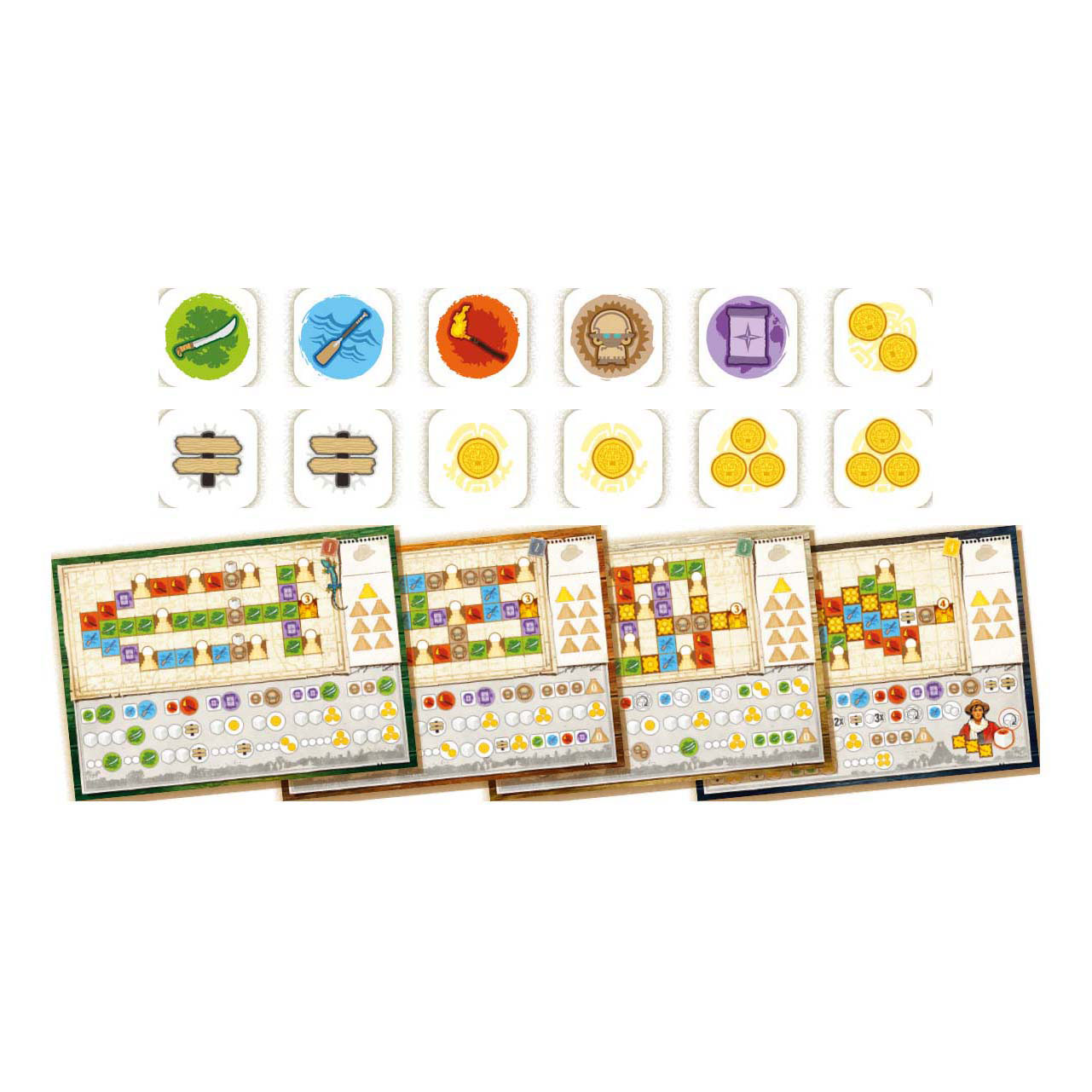 Würfle und finde den schnellsten Weg durch den Dschungel, um als Erster El Dorado zu entdecken! Tief im dichten südamerikanischen Dschungel liegt El Dorado, die Stadt aus Gold. Mit einem spezialisierten Team versuchst du, den Dschungel zu bezwingen, das Vertrauen der Einheimischen zu gewinnen und diese verlorene Stadt zu finden. In diesem Würfel- und Erkundungsspiel musst du deinen Weg zum Sieg geschickt bahnen, indem du die richtigen Würfel wählst. In vier Expeditionen, jede mit eigenem Spielbogen und eigener Geschichte, kämpfst du gegen deine Mitspieler um den Sieg. Spannend, abenteuerlich und vor allem super lustig: Mit dieser Würfel-Edition des beliebten Brettspiels lüftest du die Geheimnisse von El Dorado wie nie zuvor! Warum dieses Spiel spielen? Das Würfel- und Erkundungsspiel-Genre ist eine unterhaltsame und einzigartige Variante der klassischen Würfel- und Schreibspiele. Basierend auf dem beliebten Brettspiel gleichen Namens, ist es dank seiner kompakten Verpackung ideal für unterwegs! Wer spielt „Die Suche nach El Dorado: Würfelabenteuer“? Seit Jahren wetteifern Jung und Alt darum, als Erste El Dorado zu erreichen. Mit diesem Würfelabenteuer wird der Wettkampf noch kompakter und abenteuerlicher, aber garantiert nicht weniger unterhaltsam! Spielst du am liebsten überall mit oder bevorzugst du Würfelspiele, die taktische Entscheidungen erfordern? Brennst du für Abenteuer und Geheimnisse und möchtest alles über die wahre Entdeckung von El Dorado erfahren? Was auch immer dich antreibt, dieses Würfelabenteuer macht jede Partie zu einem neuen Erlebnis! Wie spielt man „Die Suche nach El Dorado: Würfelabenteuer“? Wähle eine der vier Expeditionen, um dein Abenteuer zu beginnen. Lies unbedingt die beiliegende Geschichte, um alles über die bevorstehende Reise zu erfahren! Der Startspieler würfelt und wählt eine der beiden Optionen. Er verkündet das Ergebnis laut und streicht das entsprechende Feld auf seinem Spielbogen ab. Dadurch kann er tiefer in den Dschungel vordringen, um El Dorado zu finden oder Ressourcen zu sammeln, die ihm die Reise später erleichtern. Verschiedene Wege durch den Dschungel führen zu unterschiedlichen Belohnungen. Denk daran: Du kannst El Dorado erst erreichen, nachdem du genügend Opfergaben in Tempeln dargebracht hast. Wer es schafft, als Erster in den erforderlichen Tempeln Spenden zu leisten und El Dorado zu erreichen, gewinnt die Expedition!