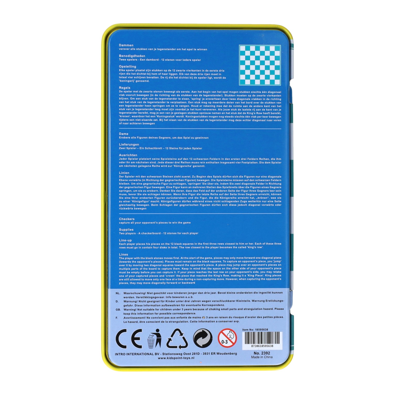 Magnetisches Reisespiel in Blechdose Schach & Dame