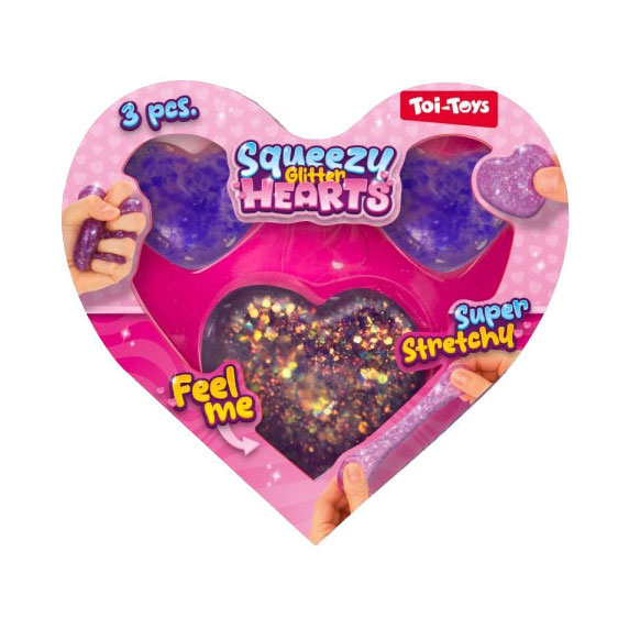 Glitzernde Quetschfiguren Herzen - 3 Stück.