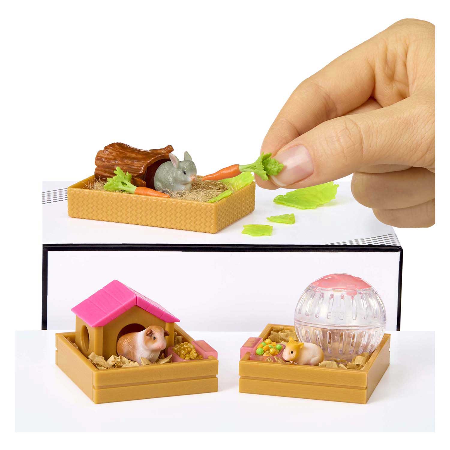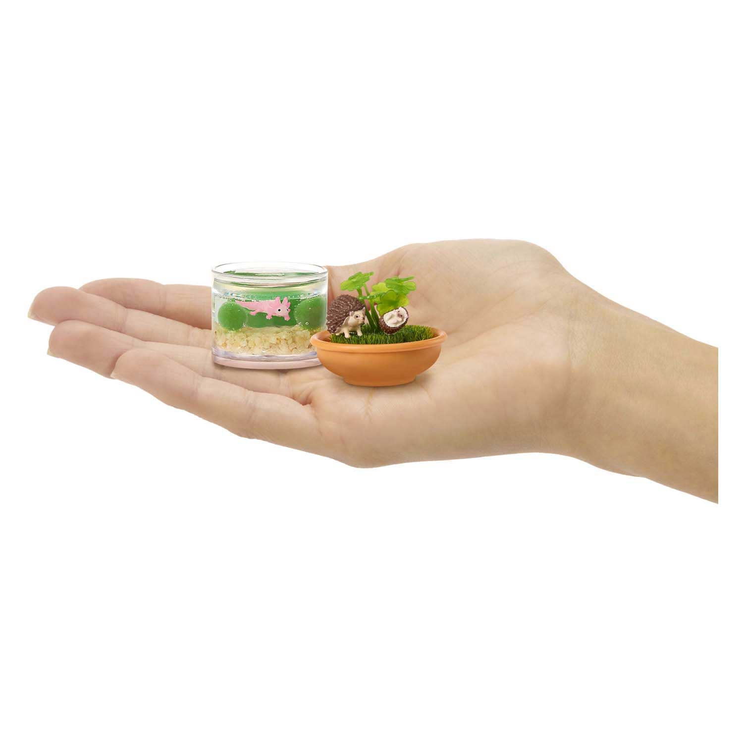 Jeder Überraschungsball enthält eine bezaubernde Tierfigur und alles Mini-Zubehör, das du für ihr perfektes Zuhause brauchst. Entdecke den Ara auf seinem Ast, eine Igelfamilie im Gras, ein Chamäleon, das seine Farbe wechselt, oder ein Kaninchen mit einem gemütlichen Baumstamm in seinem Gehege? Jedes Mal, wenn du etwas auspackst, erwartet dich ein neues Tierabenteuer!