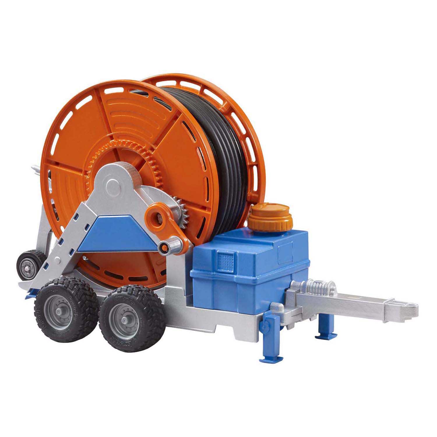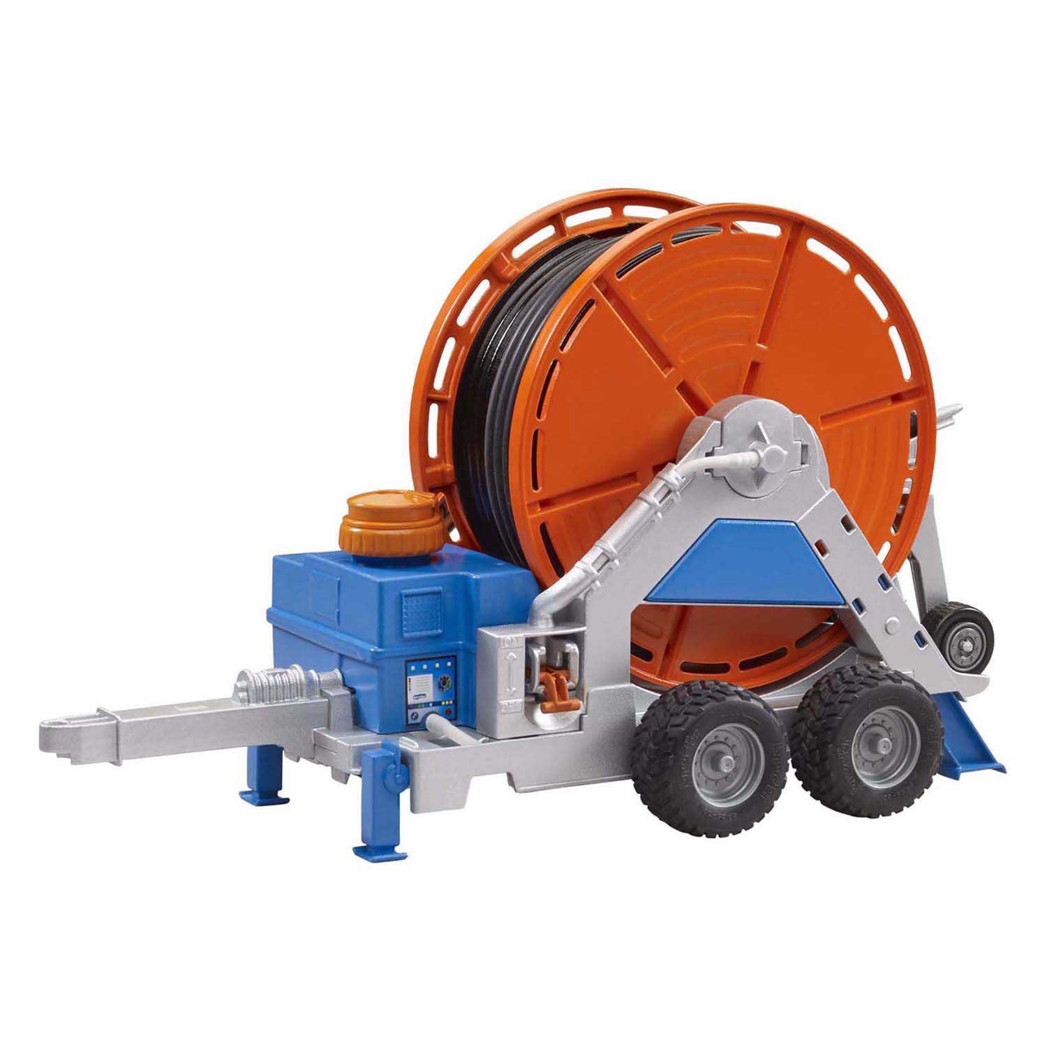 Ob Sportplätze, Baumschulen, Obstgärten oder andere große Flächen, die eine konstante und gleichmäßige Wasserversorgung benötigen – Bewässerungsanhänger haben ihren Platz. Diese für eine erfolgreiche Landwirtschaft unverzichtbare Maschine ist ab sofort im umfangreichen BRUDER-Sortiment erhältlich. Mittels Kurbel können kleine Landwirte einen 1,8 Meter langen Schlauch abwickeln, an dem eine detailgetreue Beregnungsanlage befestigt ist. Getreu dem BRUDER-Motto „Wie im Original“ verfügt er über einen Tank mit funktionierender Pumpe. Das Pumpensystem ermöglicht eine einfache und realistische Wasserverteilung. Dieser spannende Bewässerungsanhänger kann von allen BRUDER-Traktoren aus der Landwirtschaft gezogen werden.
