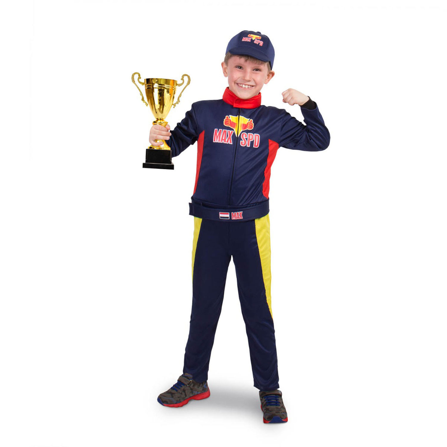 Fühlen Sie sich mit diesem Verkleidungsset wie der Formel-1-Fahrer Max Verstappen. Machen Sie sich bereit für das Rennen und zeigen Sie uns, welches Renntalent in Ihnen steckt. Das Kostümset besteht aus einem Overall, einer Mütze und einem Gürtel. Die Farben des Kostümsets sind blau, gelb und rot und auf der Rückseite des Overalls befindet sich der Text „MAX 38“. Auf der Vorderseite des Overalls und der Kappe steht der Text „MAX SPD“. Der Gürtel hat ein schönes Bild der niederländischen Flagge und den Text „MAX“. Das Verkleidungsset besteht aus Polyester und ist nicht für die Waschmaschine geeignet. Das Verkleidungsset kann ausschließlich mit einem Schwamm gereinigt werden. Passend für 9-11 Jahre, Größe 140-158 cm.