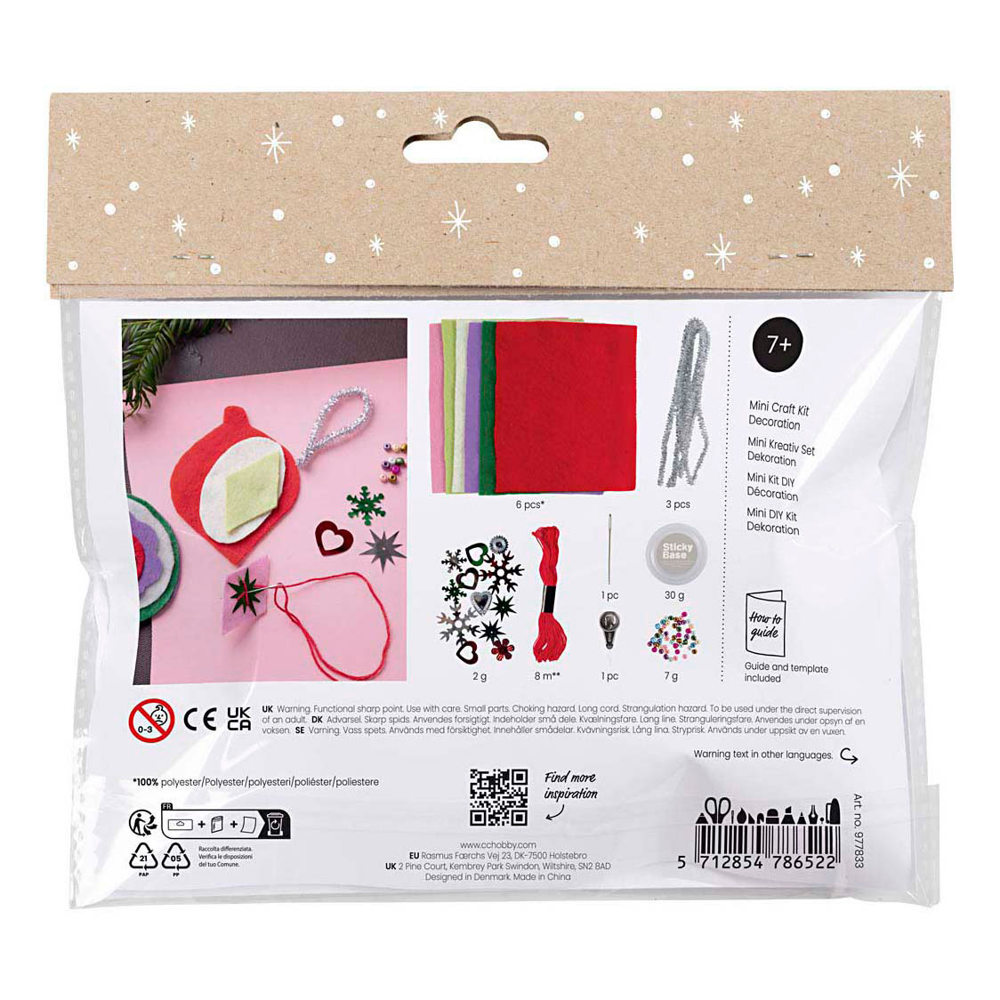 Kann Weihnachtsdekoration basteln einfach und unterhaltsam sein? Ja – und dieses Set beweist es. Als Eltern können Sie gemeinsam mit Ihren Kindern ganz entspannt fantastische Dekorationen gestalten. Schneiden Sie Filzformen mithilfe der Vorlagen aus, verzieren Sie sie mit bunten Pailletten und Perlen und kleben Sie die Teile zusammen. Für den letzten Schliff sorgen Pfeifenreiniger zum Aufhängen oder als fröhliches Detail.