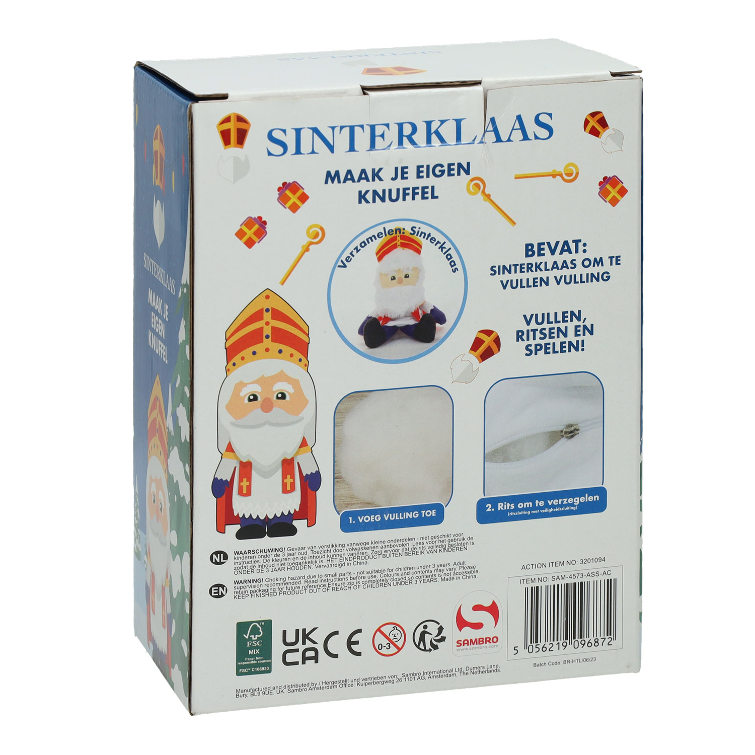 "Bauen Sie Ihr eigenes Plüschtier Set" mit dem Nikolaus. Geeignet für Kinder ab 3 Jahren. Inhalt: Füllung und leeres Plüschtier.