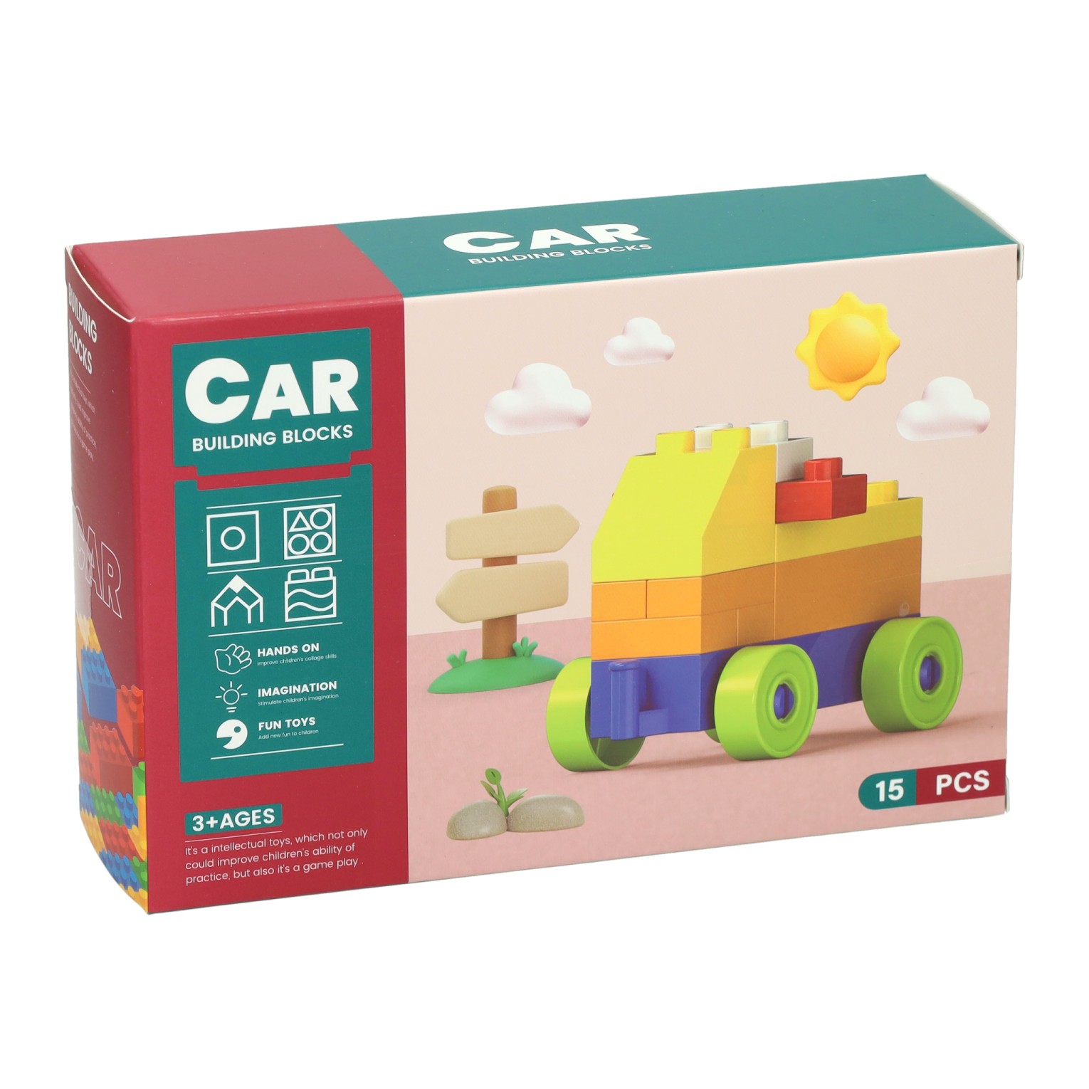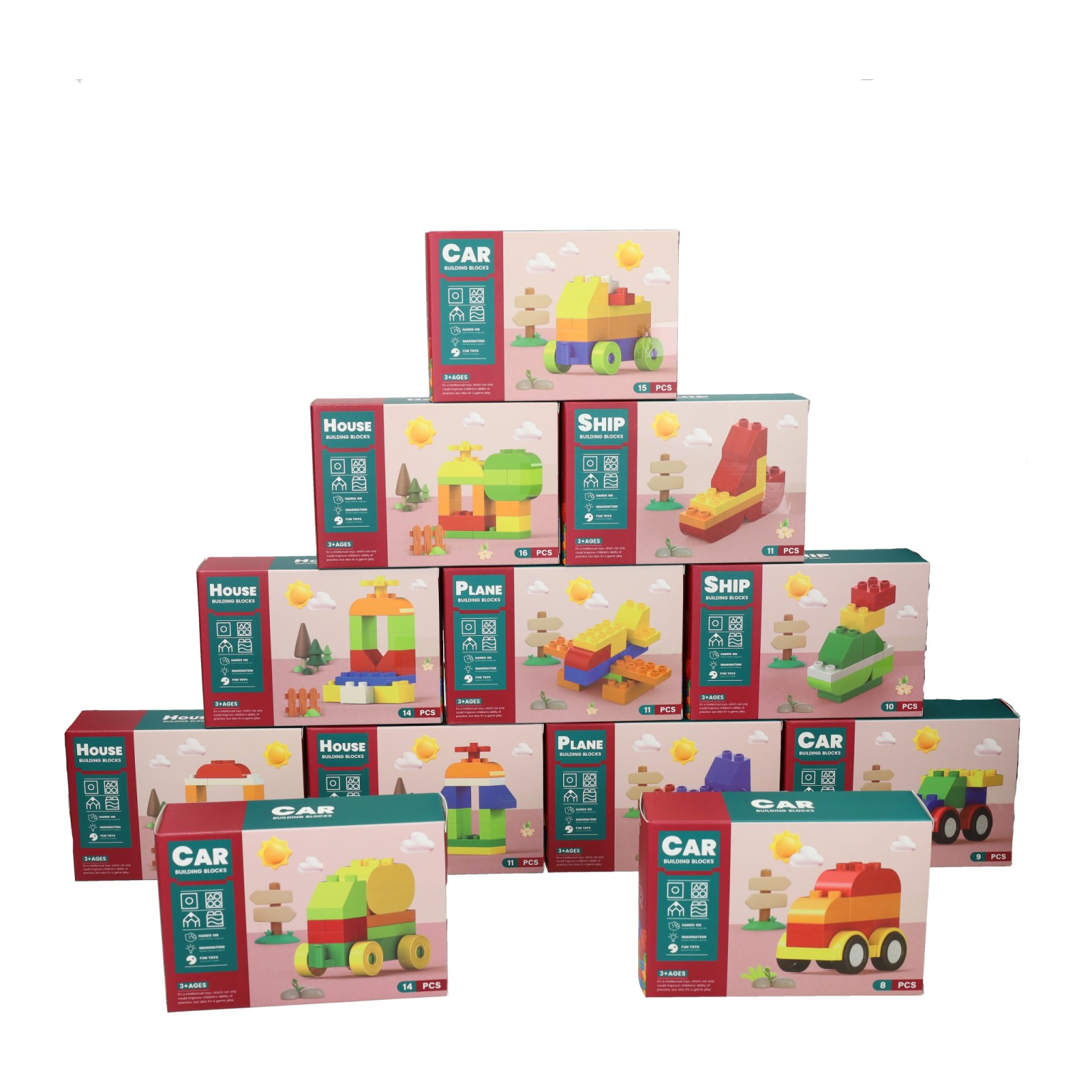 Kleiner Baukasten mit 12 Kunststoffteilen in verschiedenen Ausführungen, wie z. B. Auto, Flugzeug oder Haus. Inklusive Bauanleitung. Zufallsauswahl. Geeignet für Kinder ab 3 Jahren.