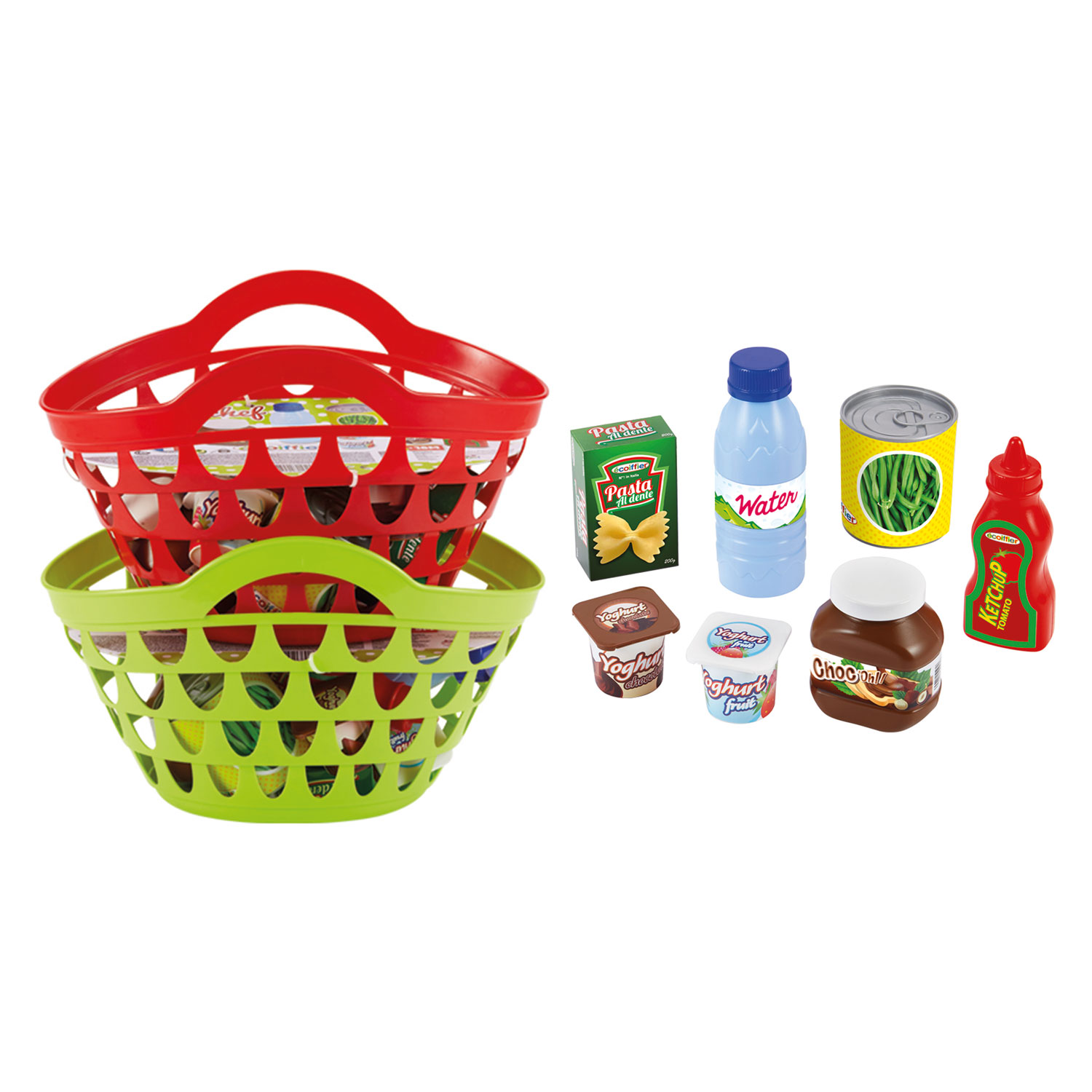With the Ecoiffier 100% Chef food basket, you'll always have a grocery basket at hand. The basket includes a bottle of water, two yogurt containers, a jar of chocolate spread, a bottle of ketchup, and a can of green beans. All components are made of sturdy plastic. The baskets are available in two colors and are shipped interchangeably.