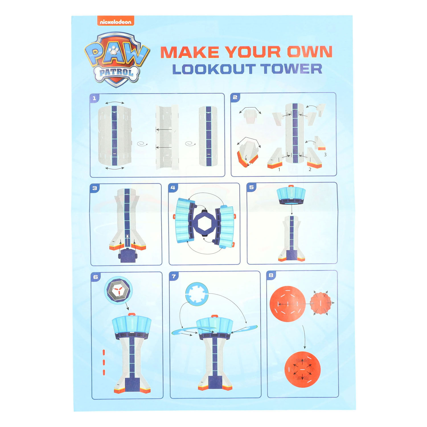 Build your own PAW Patrol lookout tower out of cardboard and act out your own adventures. The set is made of cardboard and measures 34 x 18 x 18 cm. Includes figures and is suitable for children aged 3 and up.