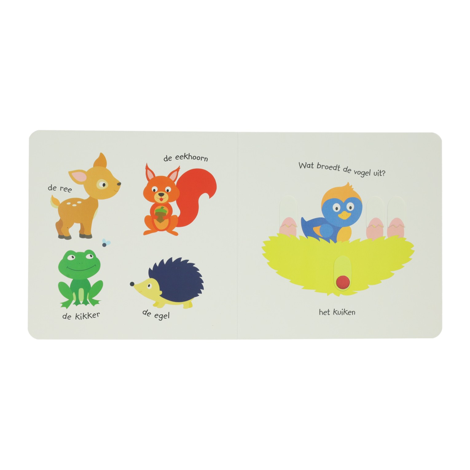 Sliding animal book with cheerful illustrations and movement elements. Made of sturdy cardboard and suitable for children aged 18 months and up.