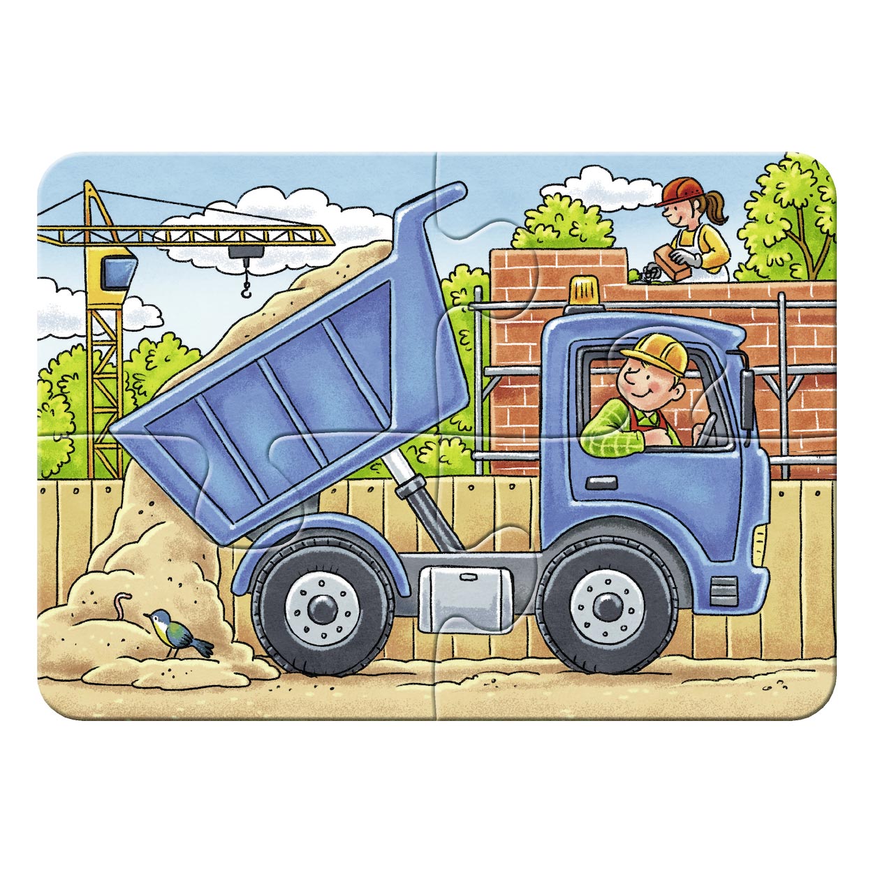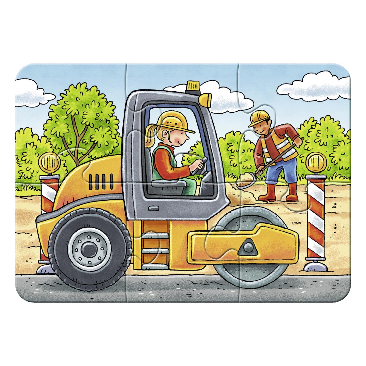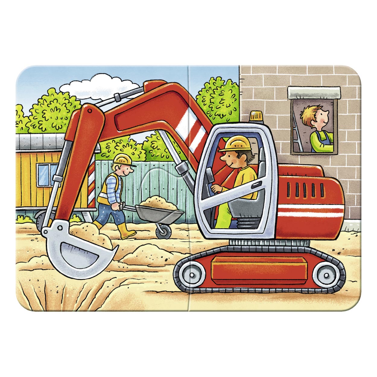 There's always something happening on the construction site! Work is happening everywhere, and the large construction vehicles are constantly coming and going. The tough excavator, cement truck, and shovel can handle anything!