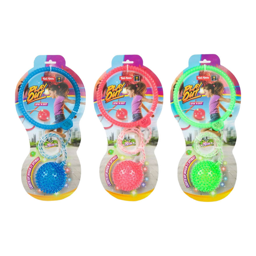 Play Out Ole Swing Game with light, consisting of an ankle ring and a 70 cm ball. Made of plastic and available in various colors. Suitable for children aged 3 and up and fun for active outdoor play.