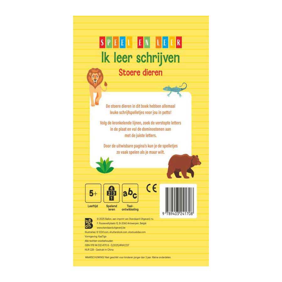 The cool animals in this book all have fun writing games in store for you! Follow the winding lines, find the hidden letters in the picture, and fill in the dominoes with the correct letters.