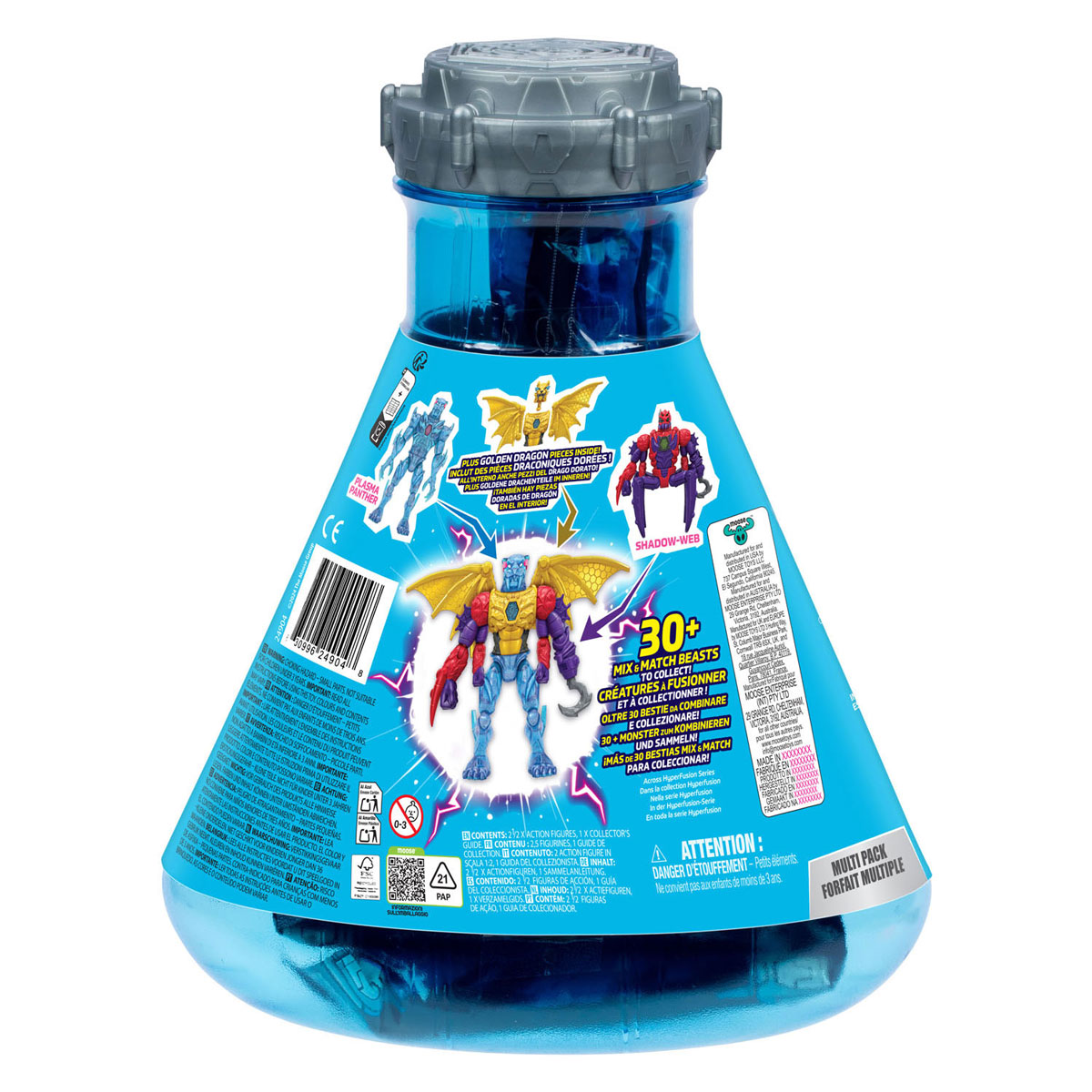 Create ultimate MrBeast Lab Hybrids! Prepare for an exciting experiment with the Multi Pack and mix & match 2 unique MrBeast Hybrids. Twist open the Lab vat and discover a strip of sealed bags full of beastly parts. Build 2 epic action figures and collect parts of the Golden Panther Dragon. But that’s not all! Collect both Multi Packs (sold separately) to complete the Ultra Rare Golden Dragon. Combine different MrBeast Hybrid characters and create your ultimate beast! With over 30 Hybrids to collect, including rare, ultra rare, and premium editions, the race to build your ultimate collection begins. Each Hybrid is 10 cm tall, has 10 points of articulation, and is ready for action! Age recommendation: 5+ years