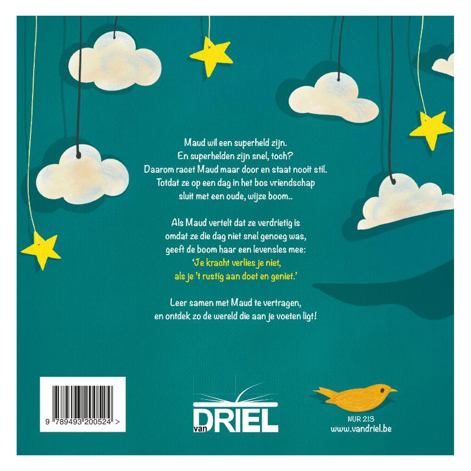 Maud wants to be a superhero. And superheroes are fast, right? That's why Maud races on and never stands still. Until one day in the forest she makes friends with an old, wise tree. When Maud tells her that she is sad because she wasn't fast enough that day, the tree gives her a life lesson: 'You don't lose your strength if you take it easy and enjoy it.' Learn to slow down together with Maud, and discover the world at your feet!