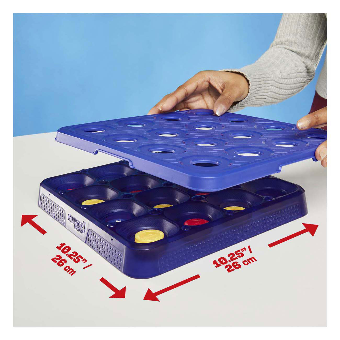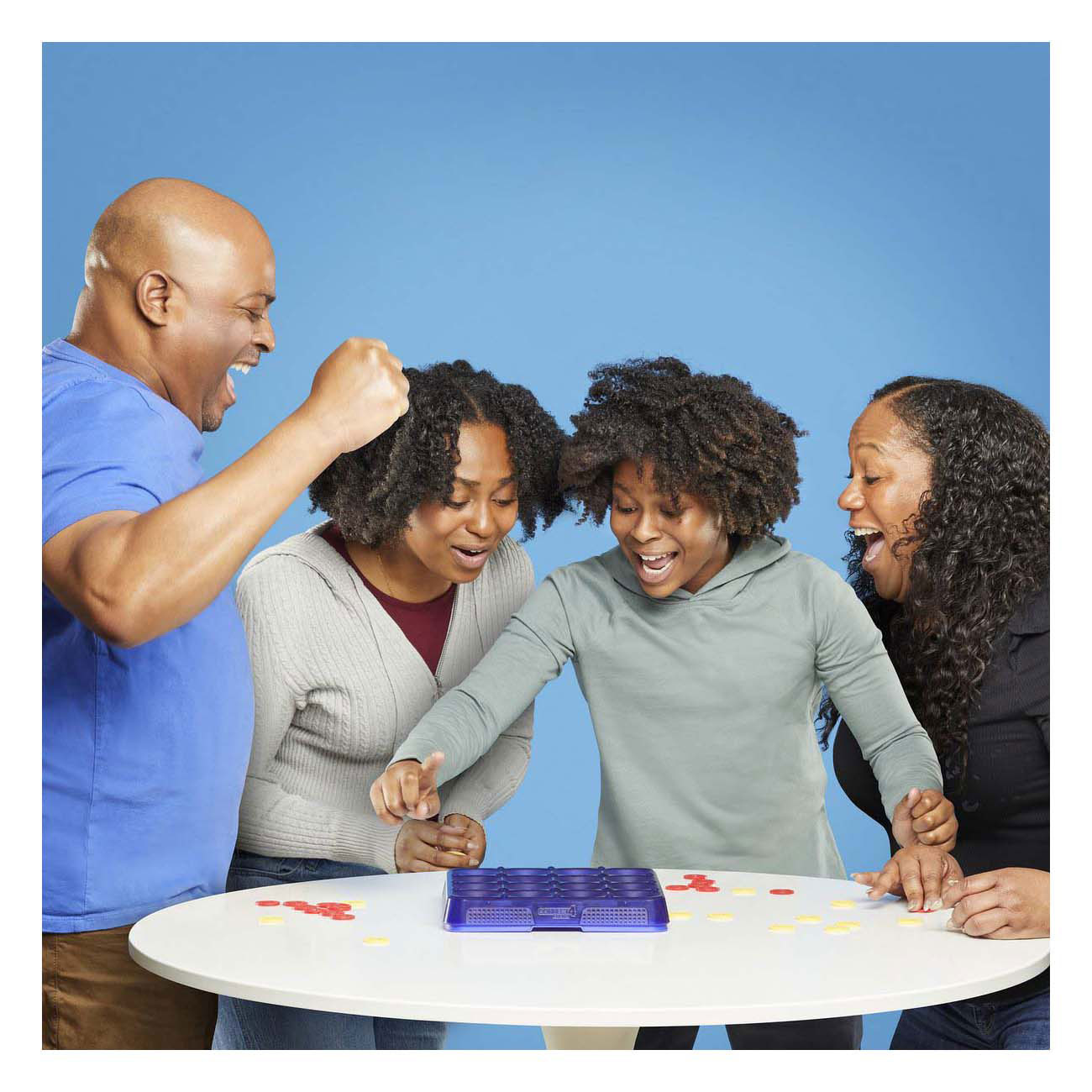Connect 4 Chaos is a fun, fast-paced twist on the original Connect 4 game! Instead of dropping their pieces into the playing frame, players bounce them from the table into spaces on the frame. If a team's pieces land on an opponent's space, they steal that space! In this unpredictable game, everything can change in seconds as players sink pieces, steal spaces, and sabotage their opponents. Looking for an even bigger challenge? Try the alternate play modes: corner play or center play. For a more relaxed pace, take turns. This family game takes just 10 minutes to play, making it ideal for quick, fun games for kids, party games for adults, or birthday parties. Plus, its all-in-one design makes it a great travel game! CONNECT 4 and HASBRO GAMES and all related trademarks and logos are trademarks of Hasbro, Inc.