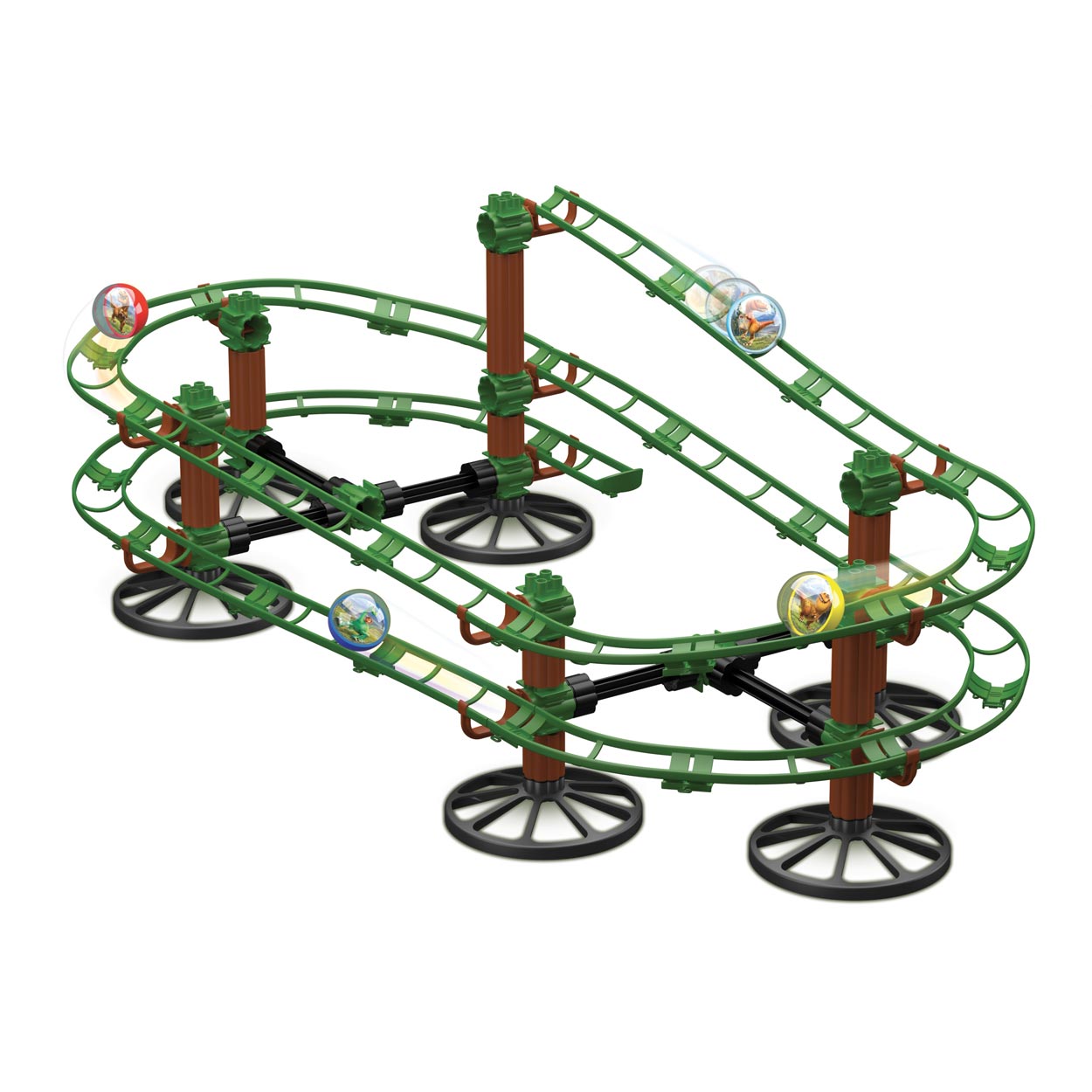 Step back into the world of dinosaurs with this awesome XL marble run. Race Arlo the dino against the three other famous dinos from the movie. With 130 pieces, you can build a track over 4 meters long! Includes 4 dino marbles.