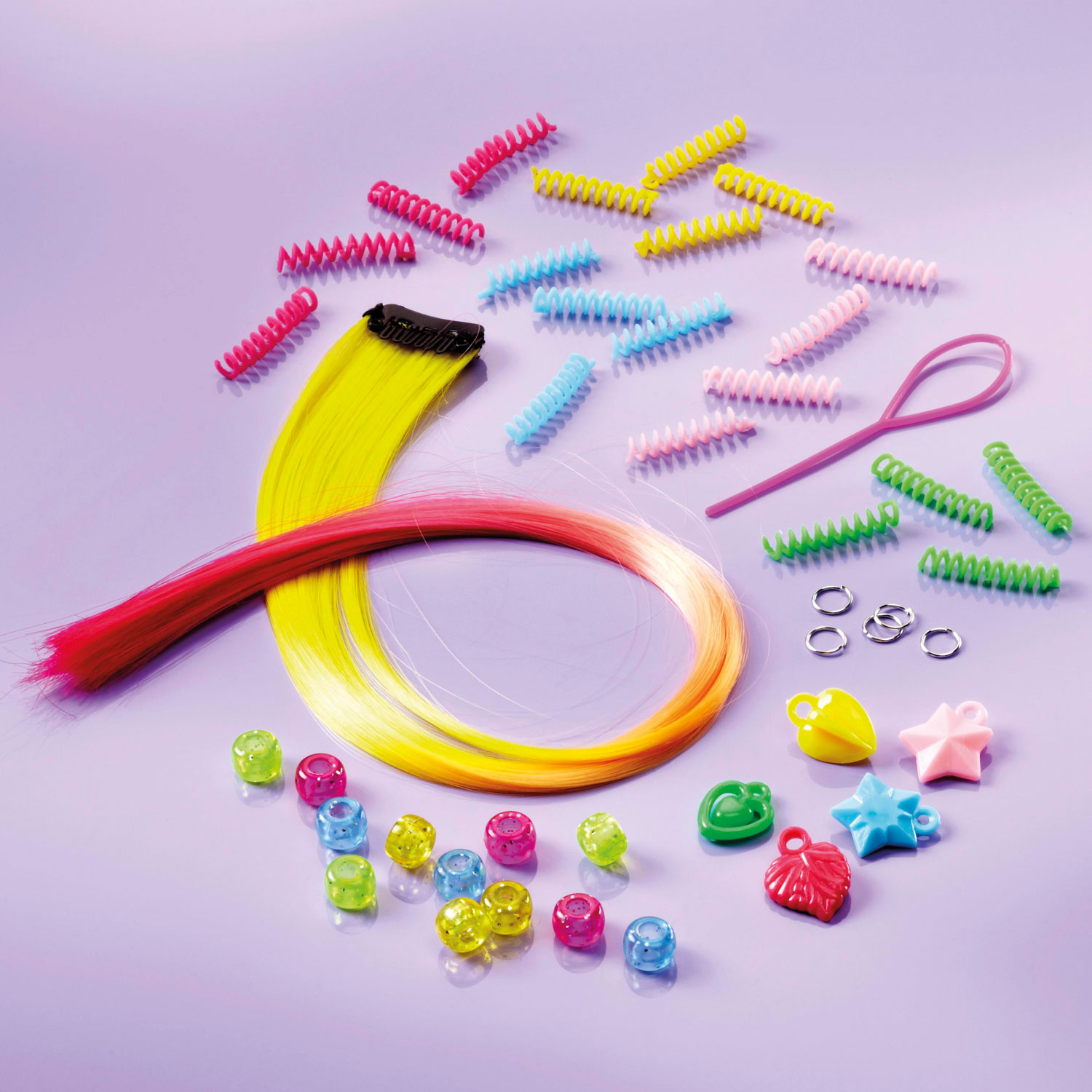 Get as beautiful hair as a princess! Are you going to put pink Twirlies in your hair today? Or are you going for blue? Or just all of them! You have everything to make your hair beautiful. This set contains 20 curling beads in different fun colors. There are 12 glitter beads, 5 charms and 5 metal rings. There is even a rainbow hair extension, so your hair will be even more cheerful. You can use and change the Twirlies again and again, so you look more beautiful every day! For every hair type.