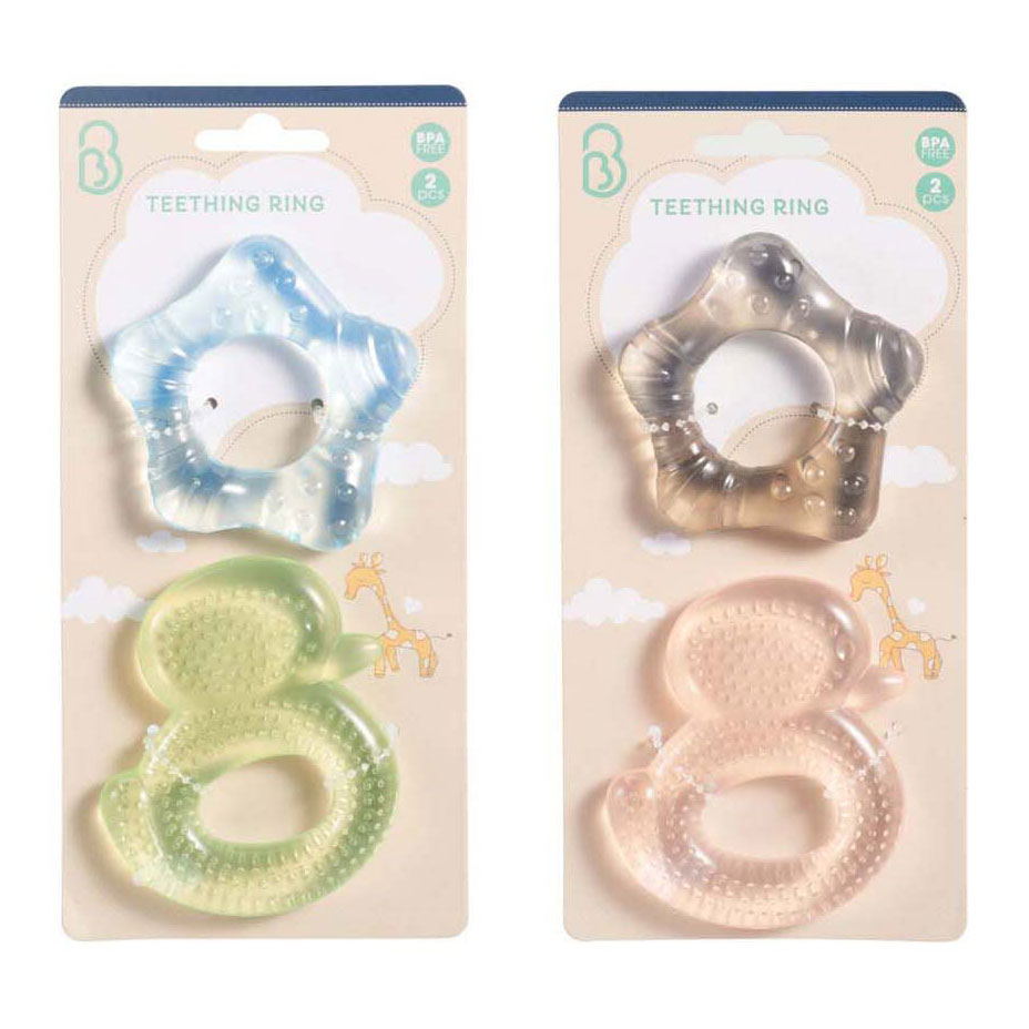 Set of 2 gel teething rings with different structures. Can be cooled in the refrigerator. Made of BPA-free plastic. Suitable from 2 months.