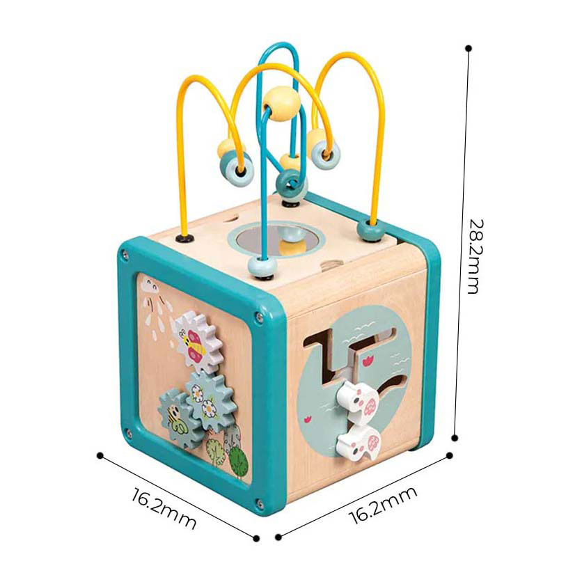 Wooden Activity Cube with Bead Frame
