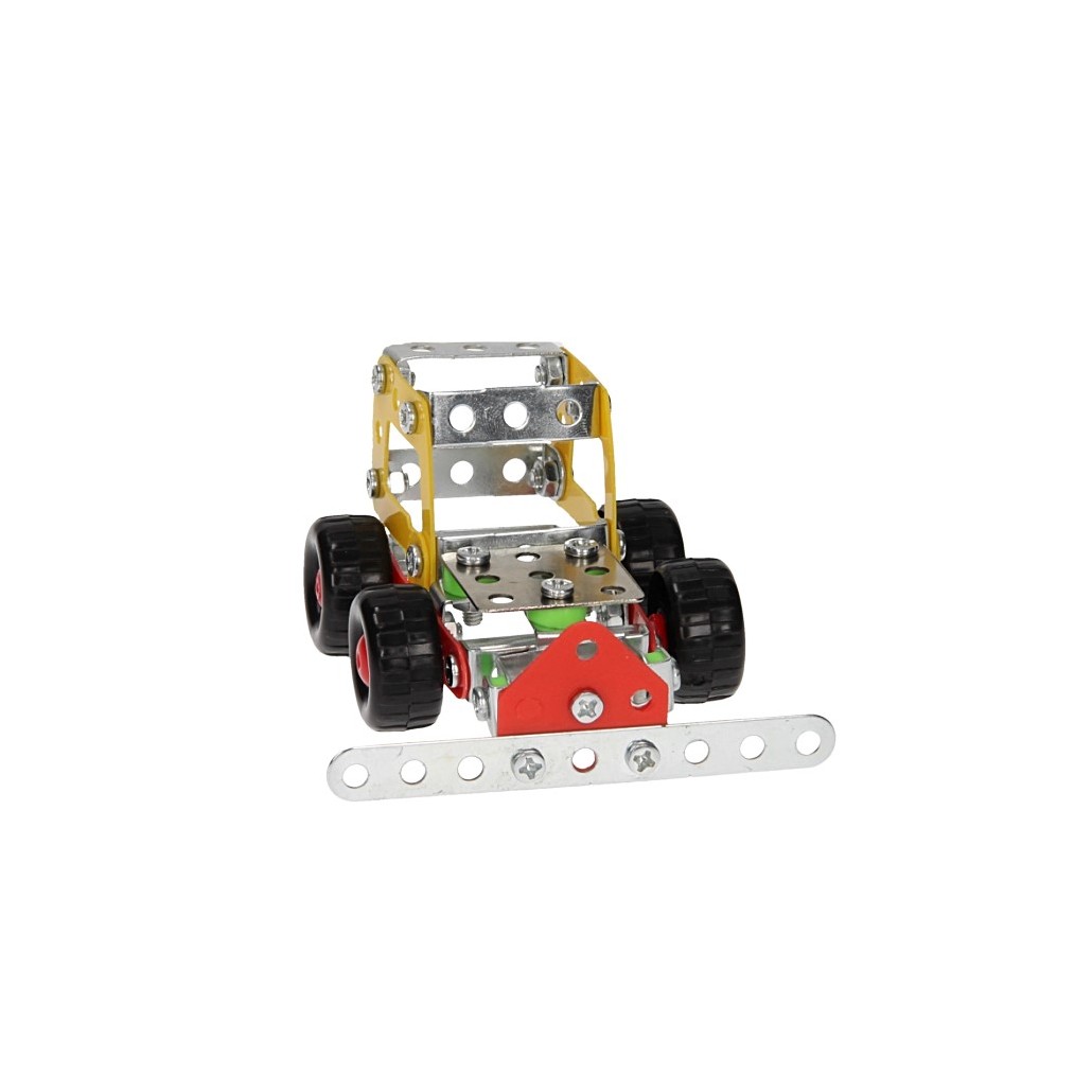 Build a ground car yourself with this metal construction set. The set consists of 91 parts. All you need is a good mood to get started. Everything you need is in the set: the instructions are on the back of the box and the tools you need are included. Good luck building!