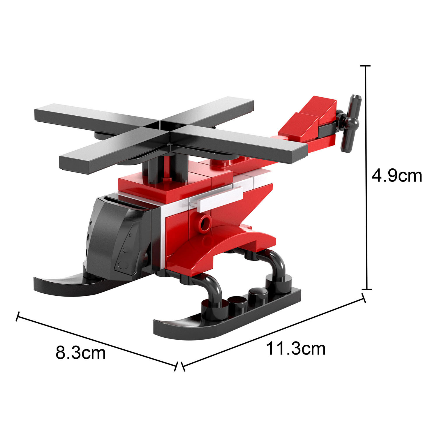 This 41-piece fire helicopter construction kit is suitable for children ages 6 and up. Dimensions: 11.3 x 8.3 x 4.9 centimeters.