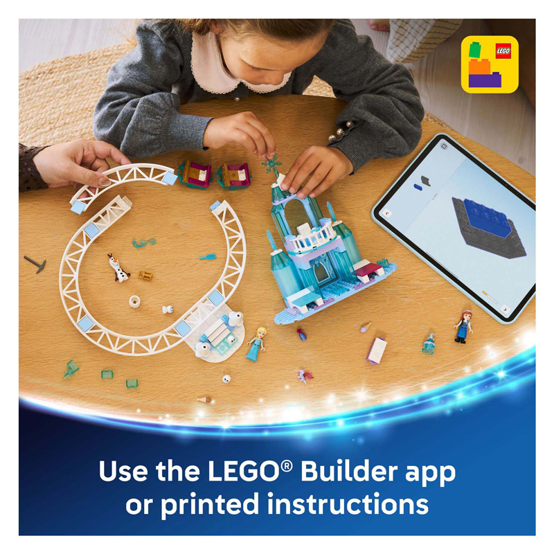 Give young children aged 4 and up a treat with this LEGO® Disney Frozen Elsa’s Ice Castle and Snow Ride (43281) building toy. Kids can enjoy role-playing with 7 LEGO Disney Frozen characters: Elsa, Anna, Olaf, Bruni and 3 Snowgies, plus a 2-story castle with a throne room, balcony, 2 beds and a kitchen. There’s a railway track with steps and 3 sleigh carriages for the included figures to sit on. Kids can show their love of Disney’s Frozen with this castle toy, which makes a fun birthday gift for girls and boys and can also be combined with other LEGO Disney building sets (sold separately). 5 Starter Bricks help get kids started, and each brick bag contains 1 building model and a character, so the fun can begin quickly. As well as clear, illustrated instructions for preschoolers, an easy, intuitive building experience is provided in the LEGO Builder App, which lets kids zoom and rotate with 3D instructions, save sets and track their progress. Contains 216 parts. CASTLE BUILDING SET – Give young children aged 4 and up a treat with this building set, featuring 7 Disney Frozen figures for endless imaginative play CASTLE TRACK AND SLEDGE – This Elsa’s Ice Castle and Snow Ride (43281) building set includes 7 LEGO® Disney Frozen figures, a 2-story castle, a track with 3 sleigh cars, steps and more DISNEY’S FROZEN ACCESSORIES – The building toy includes a snow globe, lantern, 2 ice cream cones, chest with a crown and scepter, and more for creative play CHARACTERS AND FEATURES – Includes Elsa, Anna, Olaf, Bruni and 3 Snowgie LEGO® figures for Disney, an opening chest and sleigh cars on rails with room for the figures DISNEY GIFT IDEA FOR KIDS – This LEGO® Disney building toy makes a fun Christmas or birthday gift for girls and boys aged 4 and up who love castles or Disney’s Frozen DISCOVER MORE CREATIVE SETS – Add this building toy to any child’s collection and discover more sets (each sold separately) in the huge range of LEGO® creative toys and LEGO Disney building sets A FUN BUILDING EXPERIENCE – The LEGO® Builder App guides young children on an intuitive building adventure. They can save sets, track their progress, zoom in on and rotate models with 3D instructions as they build DIMENSIONS – This 216-piece LEGO® Disney building set features a 2-story ice castle with a round sled track measuring over 8” (21cm) high, 11” (28cm) wide and 10” (27cm) deep