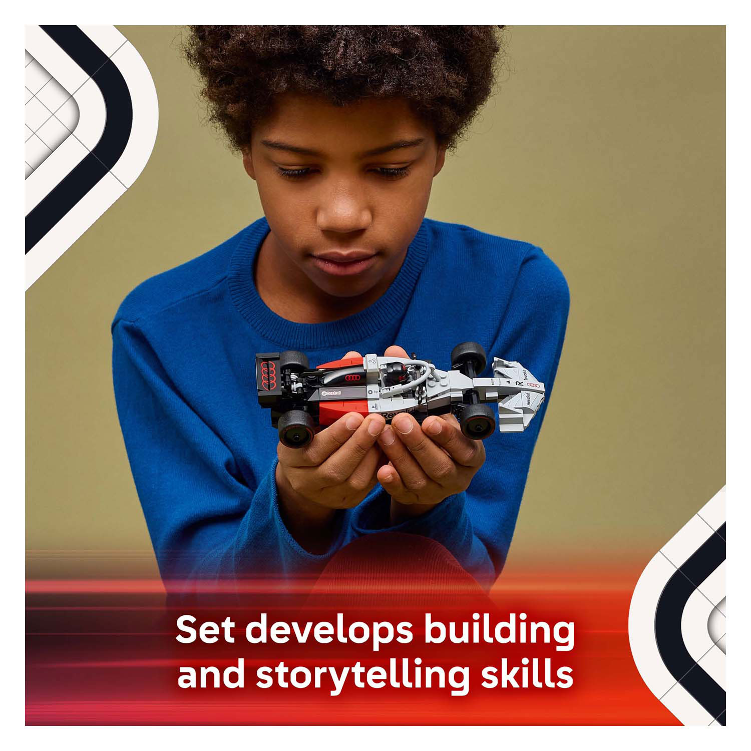 Boys and girls aged 10 and up can collect, build, display and race this LEGO® Speed Champions Audi Revolut F1® Team R26 race car (77259). This authentic display model of the brand-new team, scheduled to make its debut on the Formula 1® grid in 2026, also includes design details to meet the updated F1 regulations for the new season. This Audi Revolut F1® Team R26 race car features a cockpit, rear wing, authentic sponsor logos, front suspension and tires with 'Pirelli' written on them. This toy vehicle also comes with a minifigure in an Audi Revolut F1® Team outfit and a helmet to place behind the wheel and role-play exciting racing scenarios. LEGO Speed Champions building sets are a great gift idea that allows kids and car fans to create display models of a wide range of iconic vehicles, including other F1 cars (sold separately). With the LEGO Builder app, kids can build with confidence, zoom in on models, rotate them in 3D, and track their progress with easy-to-follow digital instructions. The set includes 215 pieces.
