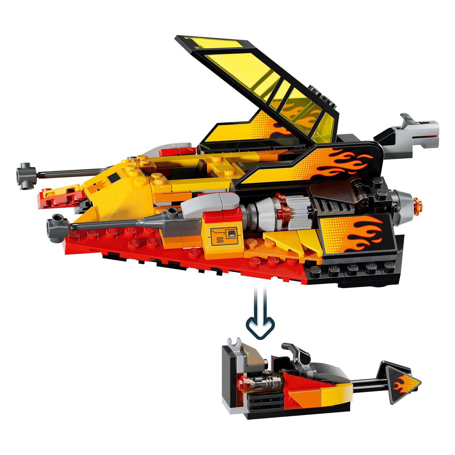 2 LEGO® Star Wars™ vehicles in 1 – The Force Burner Snowspeeder features flame stickers, an opening dual cockpit with a hidden, detachable speeder bike, and a rear stud shooter.